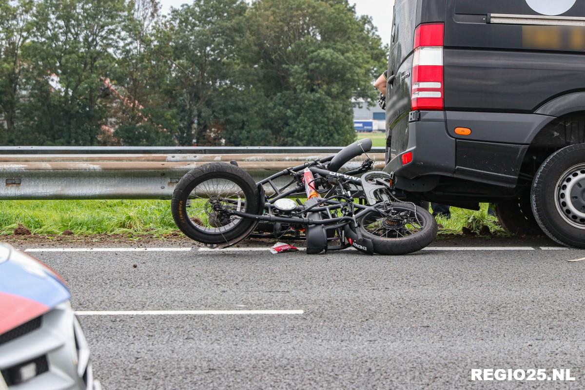 Achterop het busje hingen twee fietsen met dikke banden en die kwamen door de botsing op de snelweg terecht. De dikke banden zorgden voor verwarring. Het leek erop alsof er een motorrijder bij het ongeluk betrokken was, maar dat was dus niet het geval.