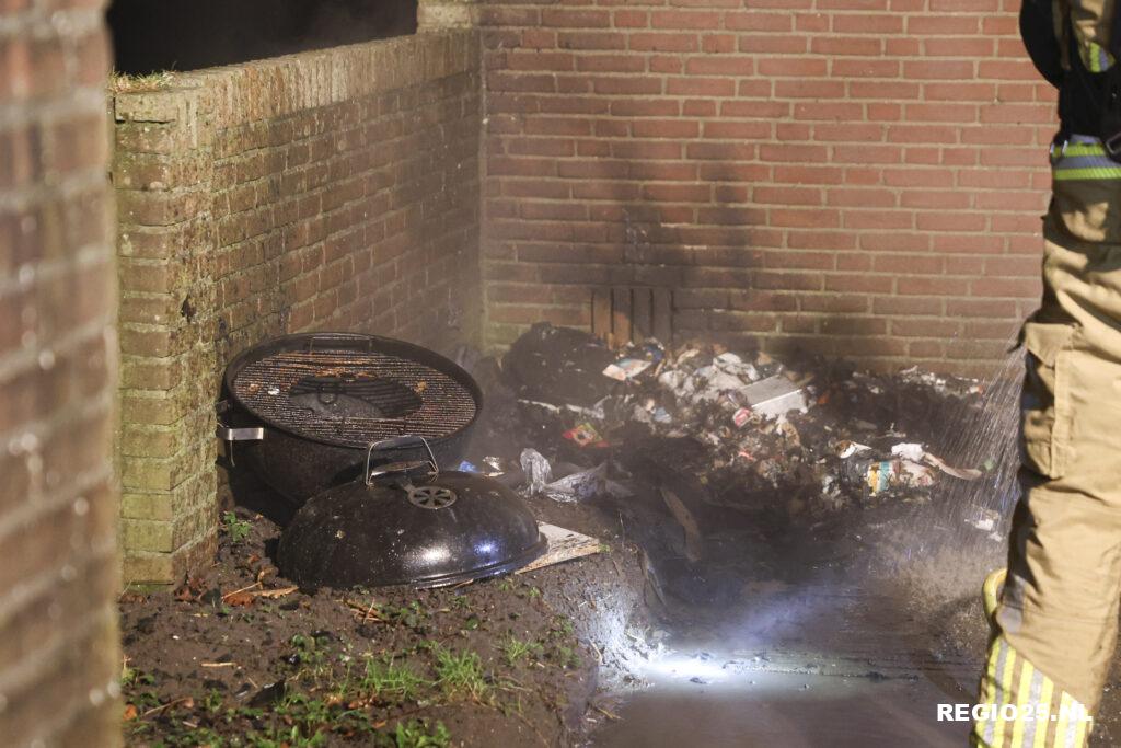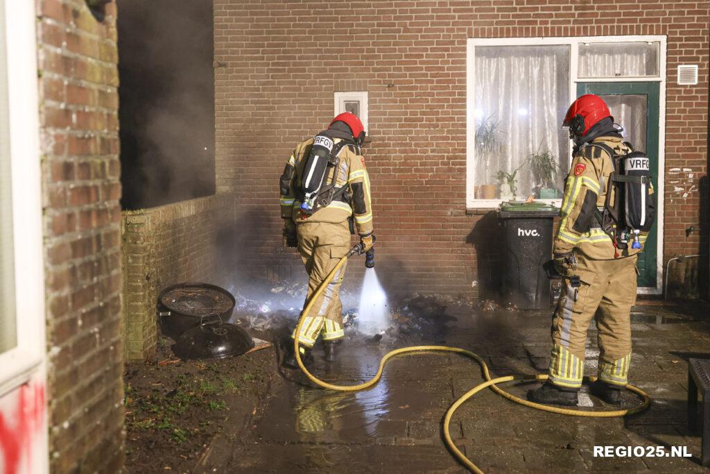 Niet veel later kwam de brandweer ook ter plaatse. Die wist de vlammen snel te doven, waarmee erger is voorkomen. De brand sloeg niet naar binnen toe.