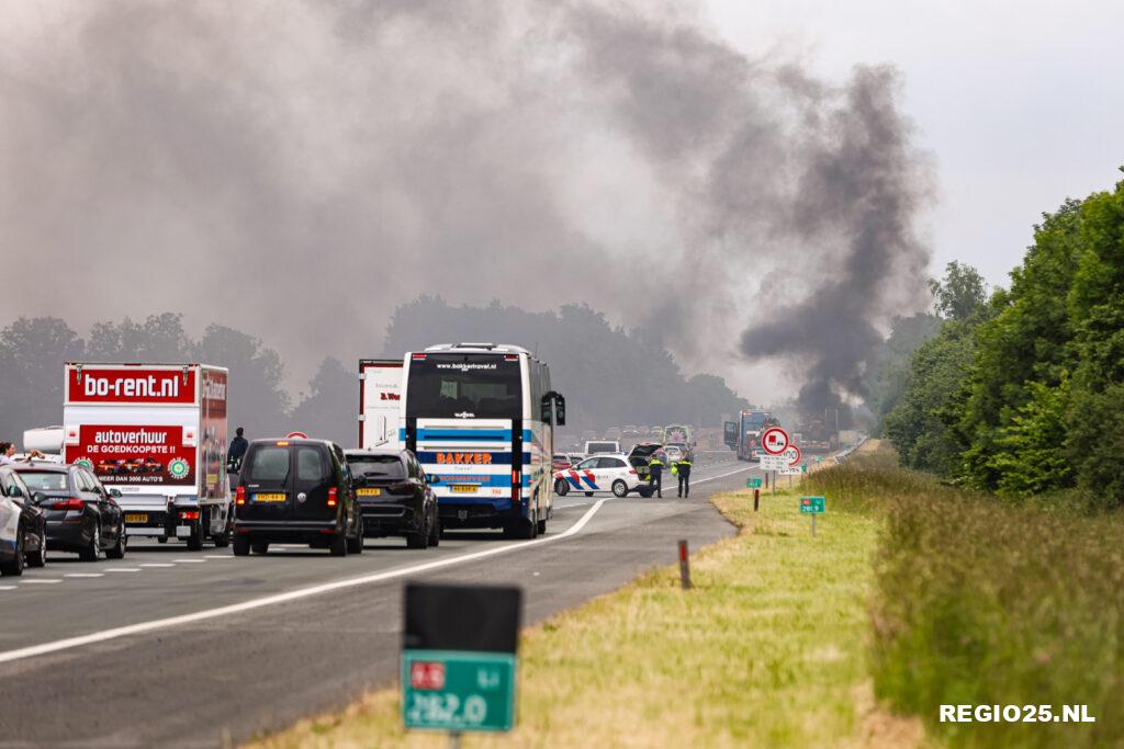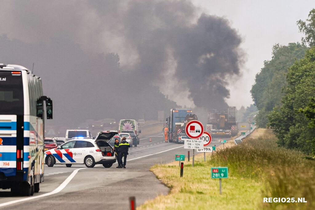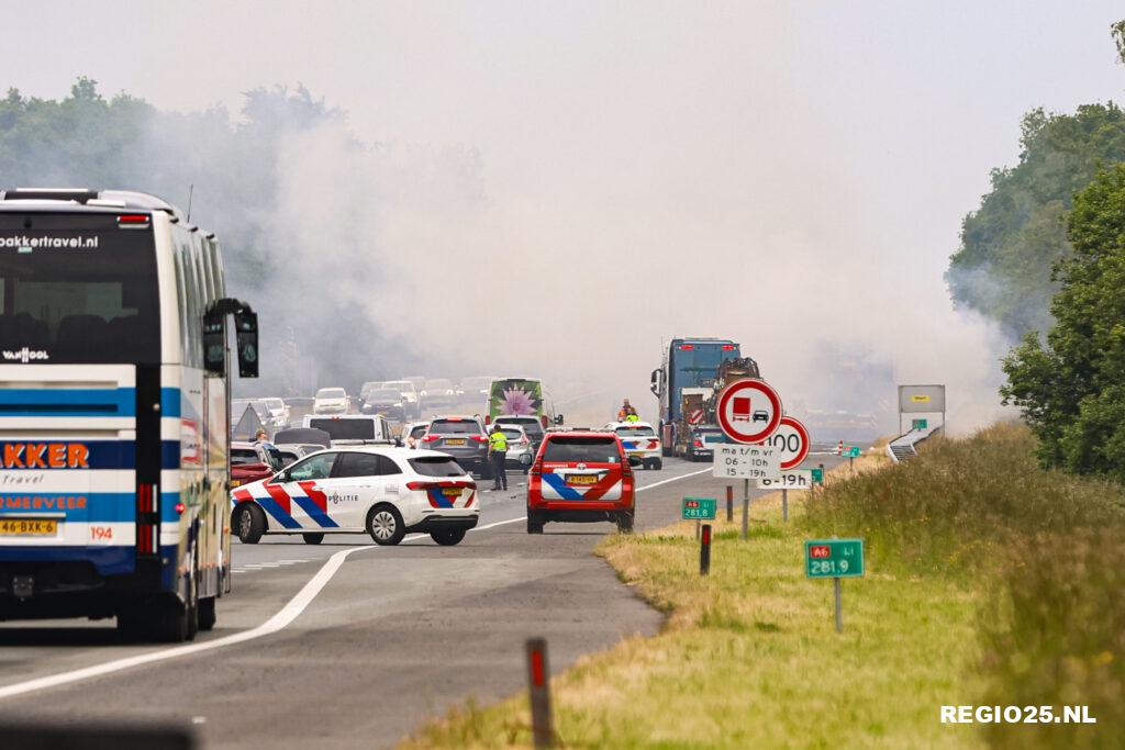 A6 urenlang dicht na brandend speciaal transport
