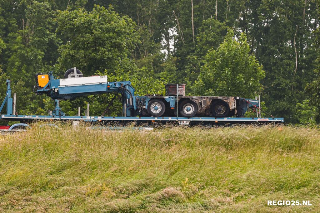 Het ging om een speciaal, begeleid transport van een dieplader die een grote graafmachine met rupsbanden vervoerde. De dieplader vloog rond 15:15 uur in brand na een klapband, aldus de brandweer. De chauffeur bleef ongedeerd en kon de vrachtwagencabine op tijd loskoppelen om een grotere brand te voorkomen. De brandweer rukte met meerdere voertuigen uit en wist de brand snel te blussen.