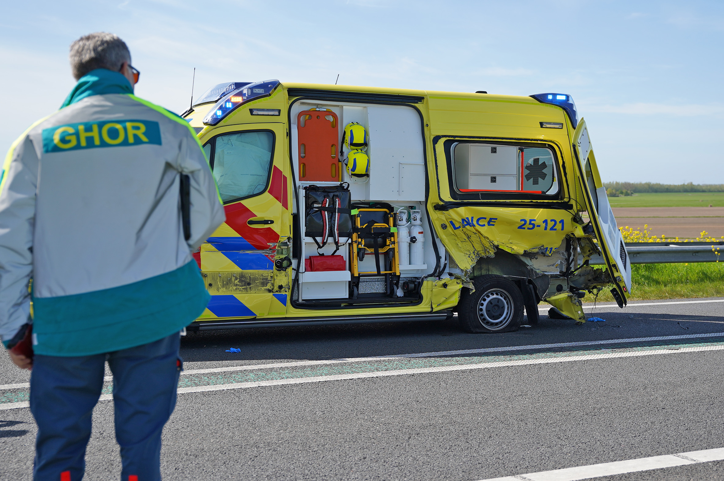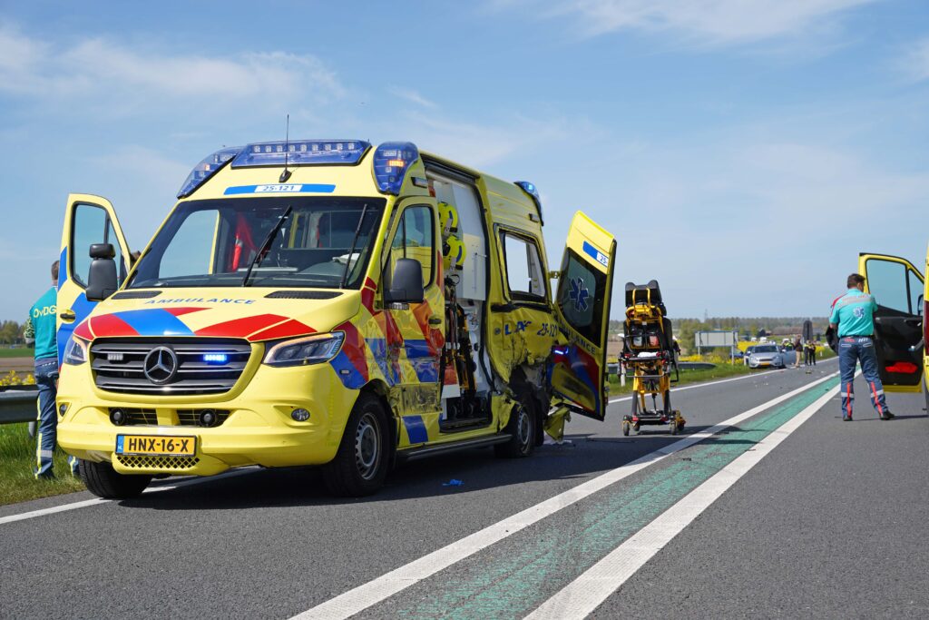 Even na 14:30 uur ging het mis op de autoweg tussen de Ramspolbrug en Eilandbrug. Door nog onbekende oorzaak schampte een auto met aanhanger de zijkant van een tegemoetkomende ambulance. Flinke schade was het gevolg.