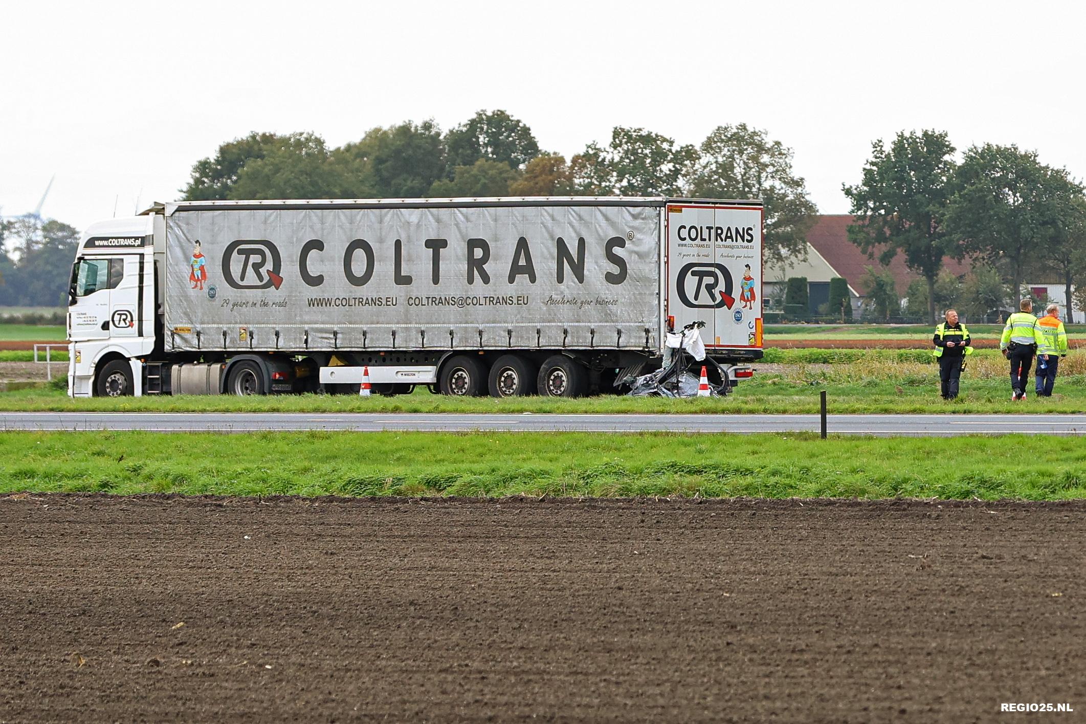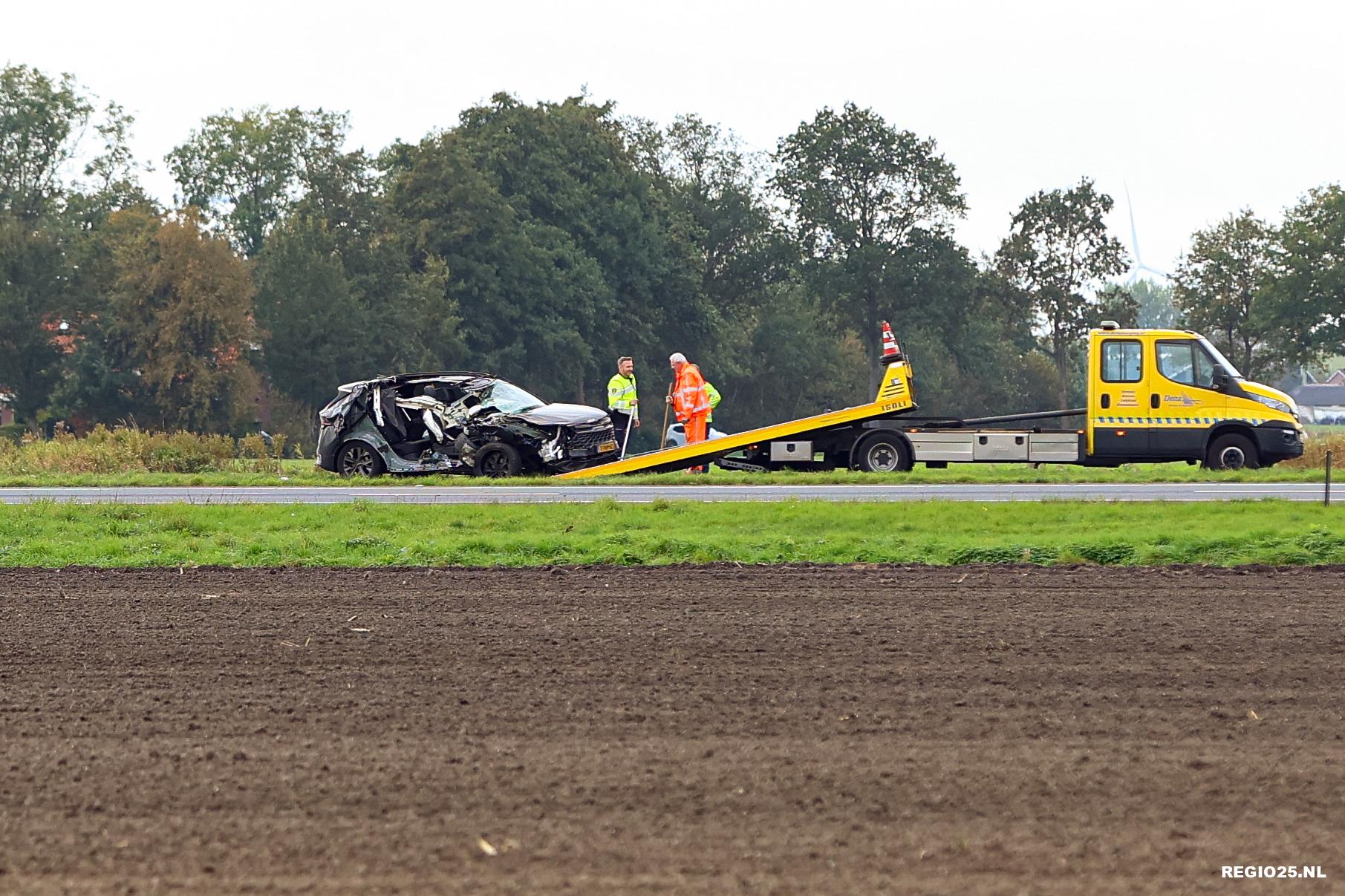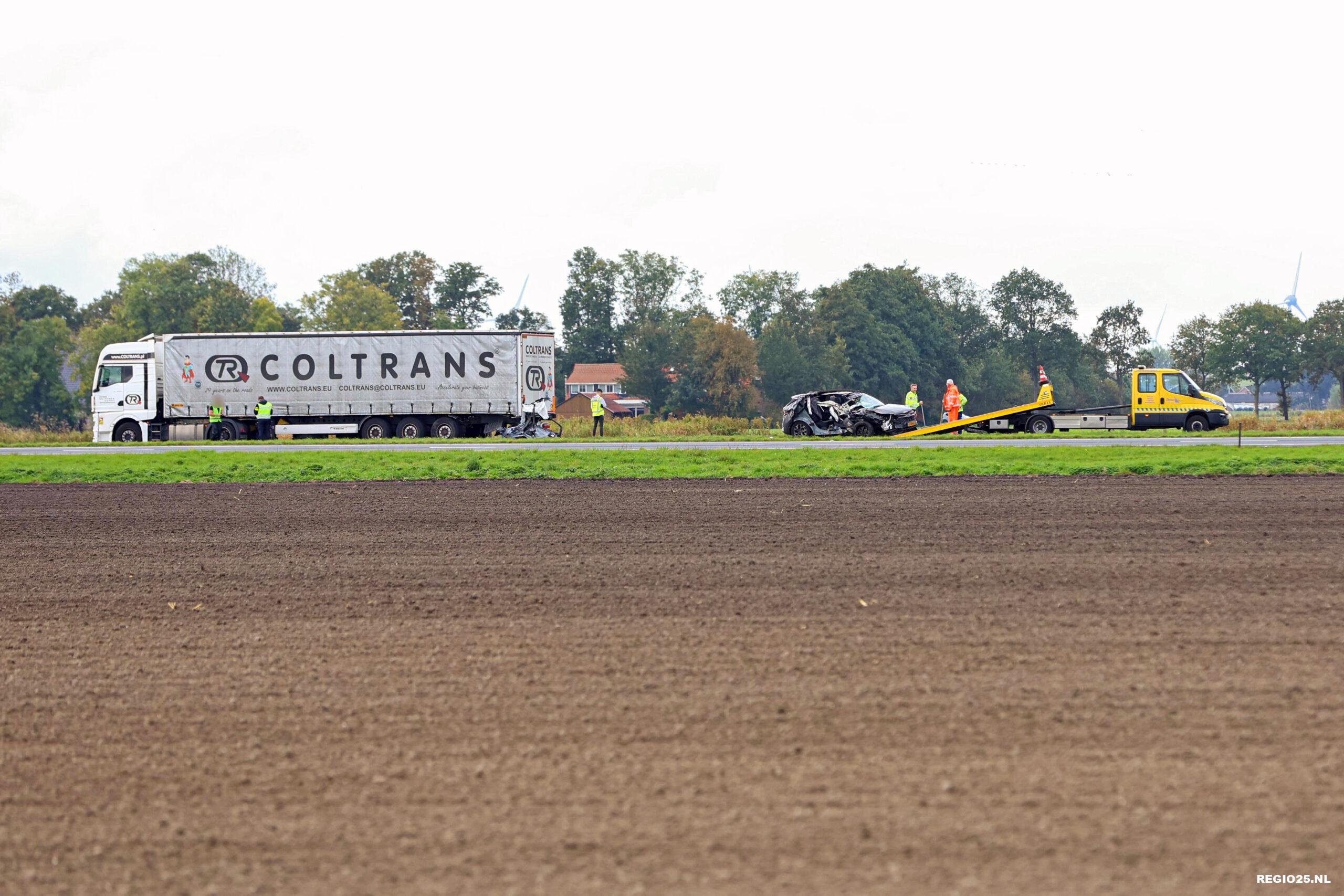 Op de A6 tussen Lemmer en Bant is donderdag rond 11:00 uur een auto hard achterop een vrachtwagen gebotst. De auto werd volledig opengereten. Er lag ook veel troep op de snelweg.