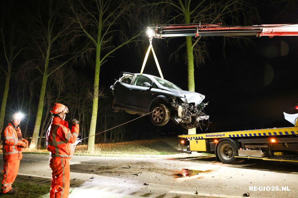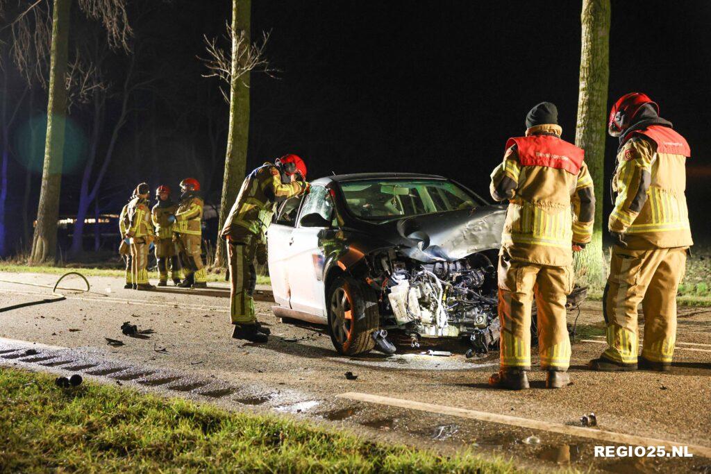 Het éénzijdige ongeluk gebeurde rond 21:00 uur in een flauwe bocht van de provinciale weg. Door nog onbekende oorzaak vloog een auto uit de bocht, waarna het voertuig met zowel de voor- als achterkant twee bomen raakte. De auto kwam vervolgens midden op de weg tot stilstand.