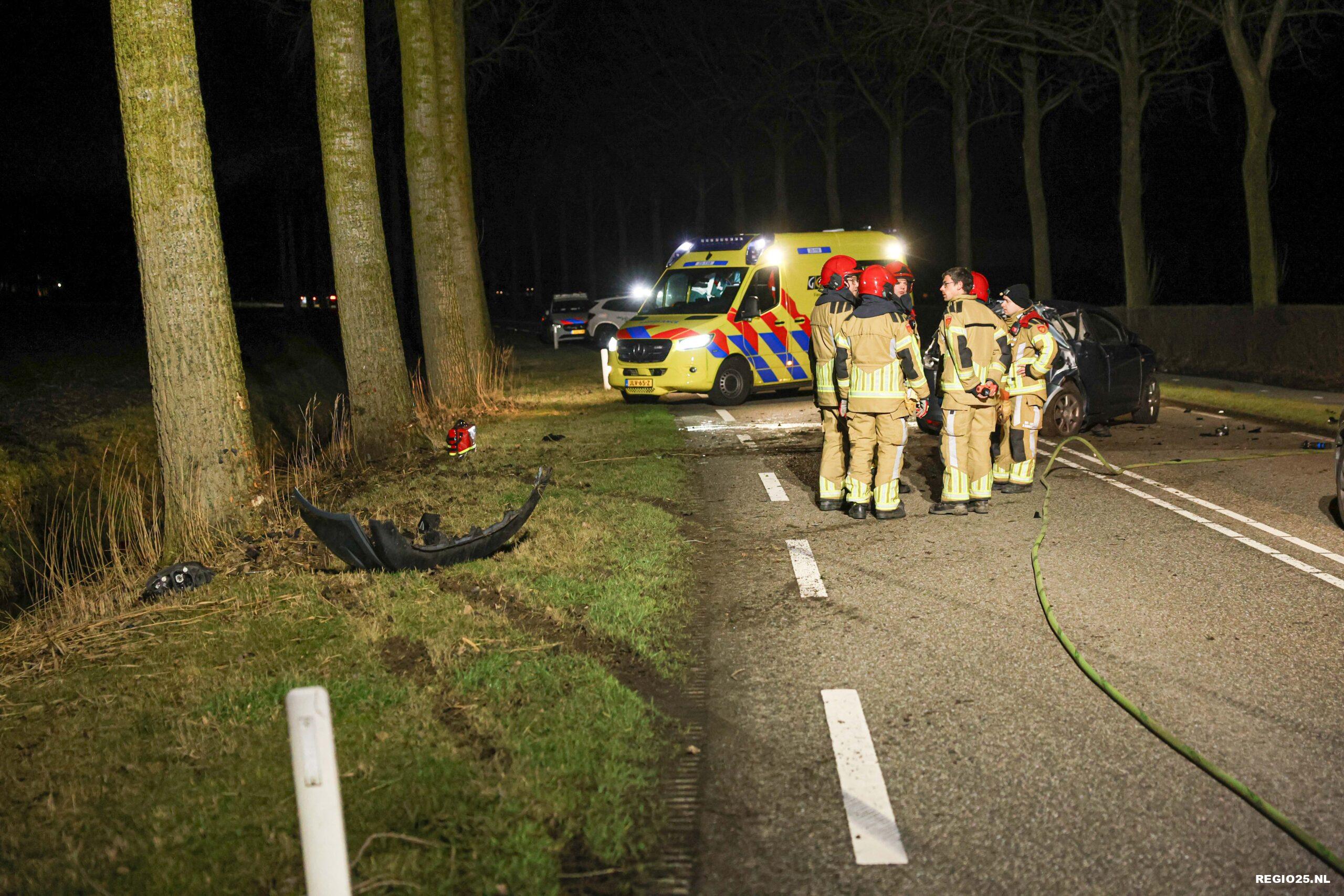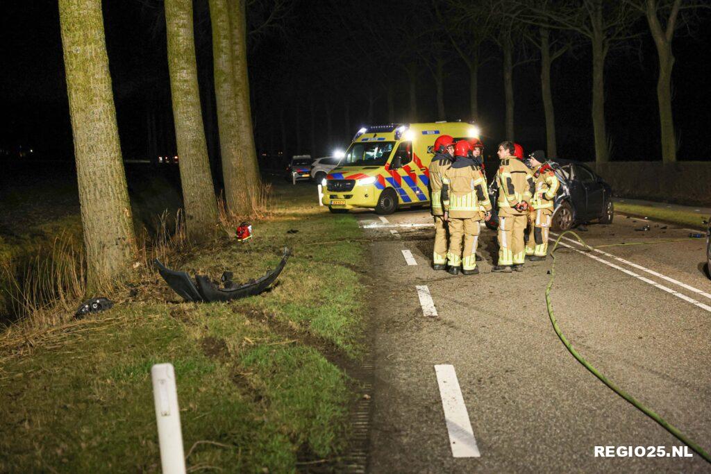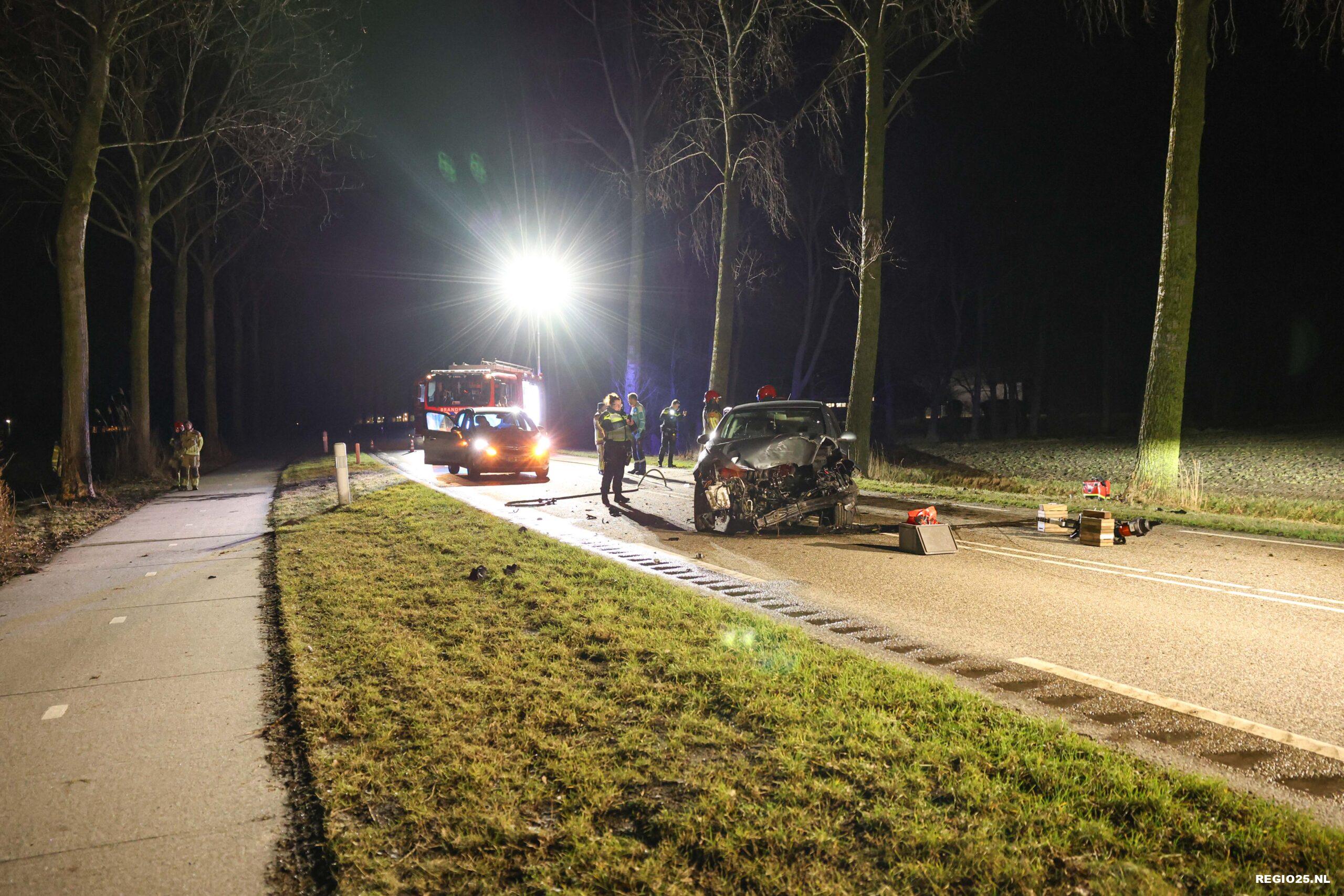 Het éénzijdige ongeluk gebeurde rond 21:00 uur in een flauwe bocht van de provinciale weg. Door nog onbekende oorzaak vloog een auto uit de bocht, waarna het voertuig met zowel de voor- als achterkant twee bomen raakte. De auto kwam vervolgens midden op de weg tot stilstand.