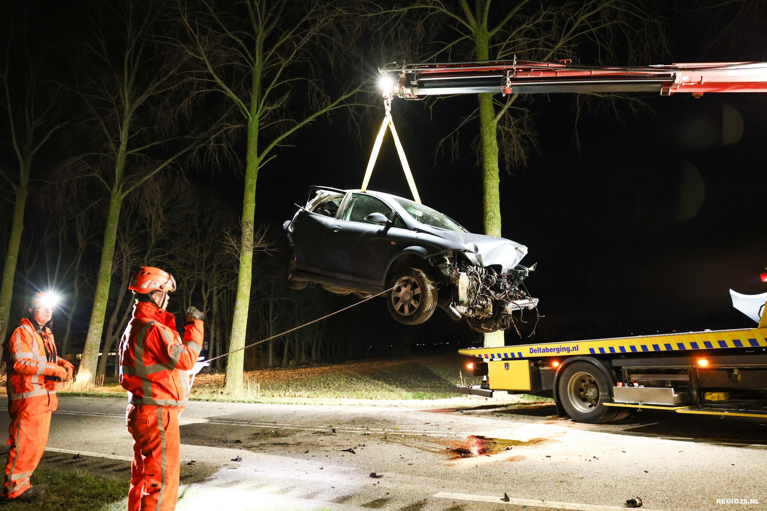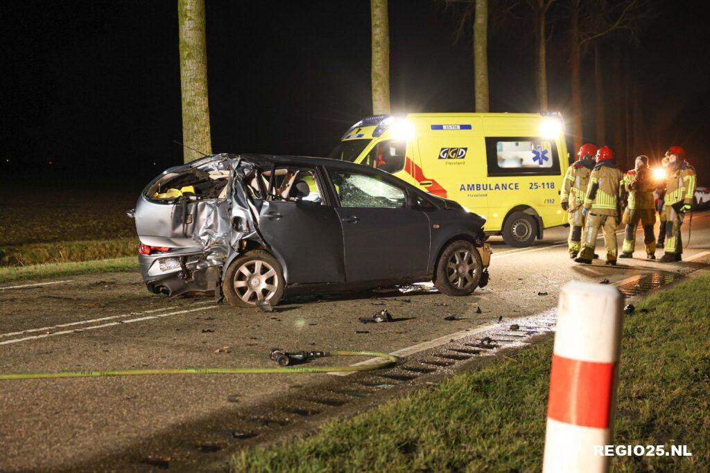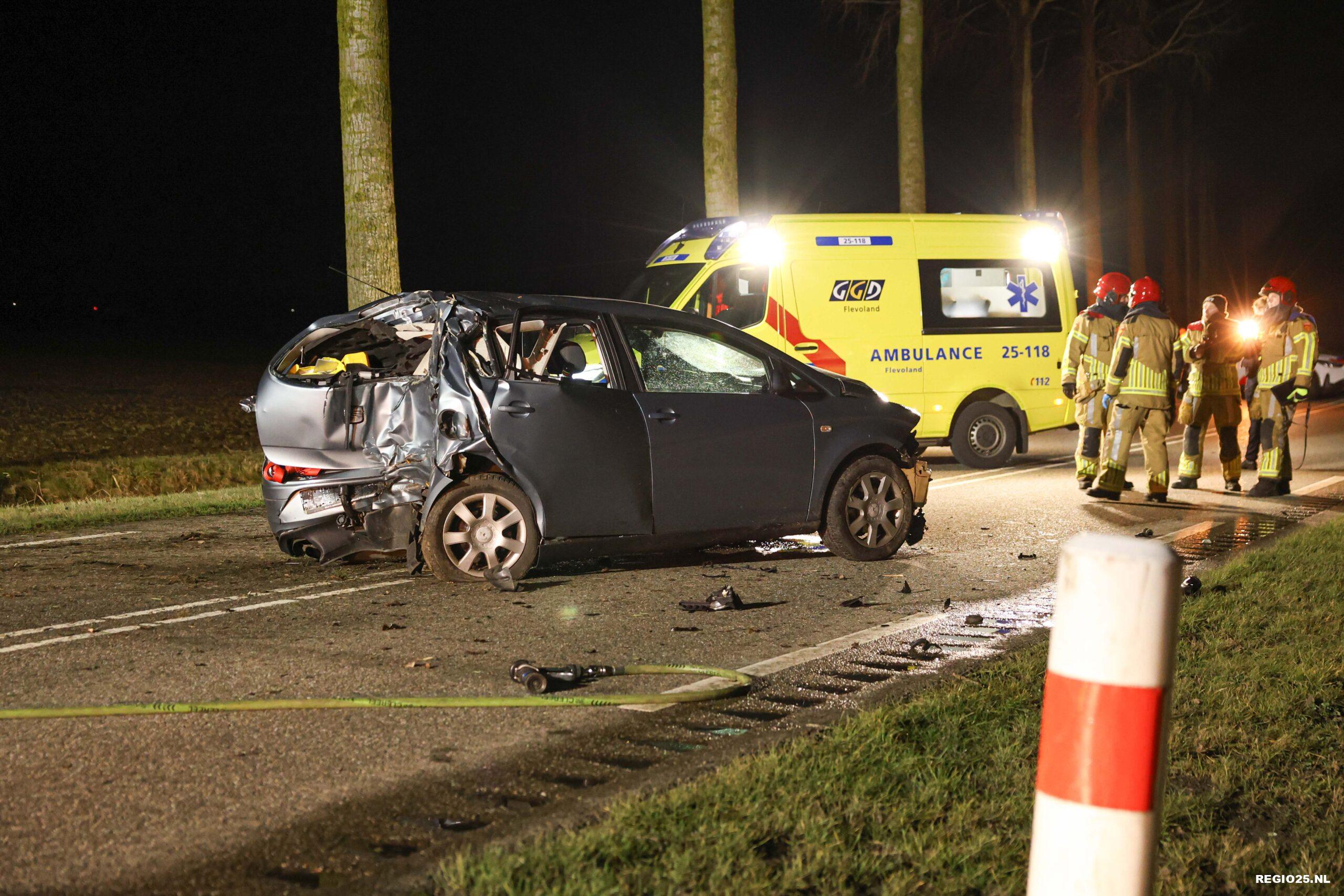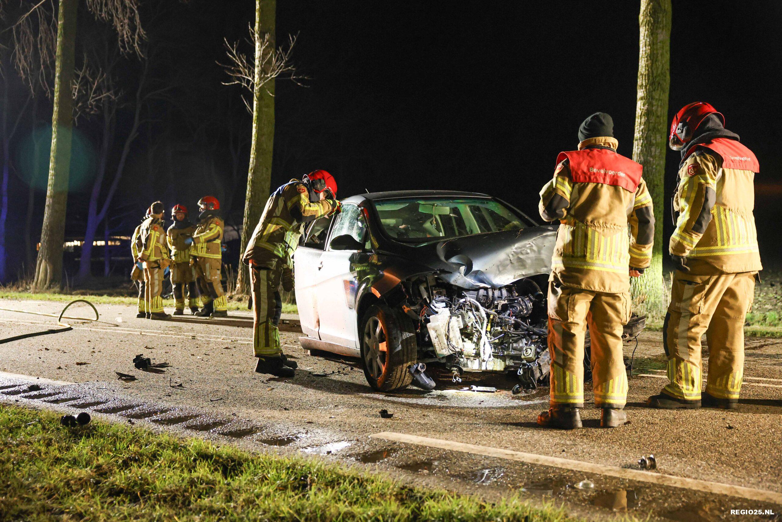 Het éénzijdige ongeluk gebeurde rond 21:00 uur in een flauwe bocht van de provinciale weg. Door nog onbekende oorzaak vloog een auto uit de bocht, waarna het voertuig met zowel de voor- als achterkant twee bomen raakte. De auto kwam vervolgens midden op de weg tot stilstand.