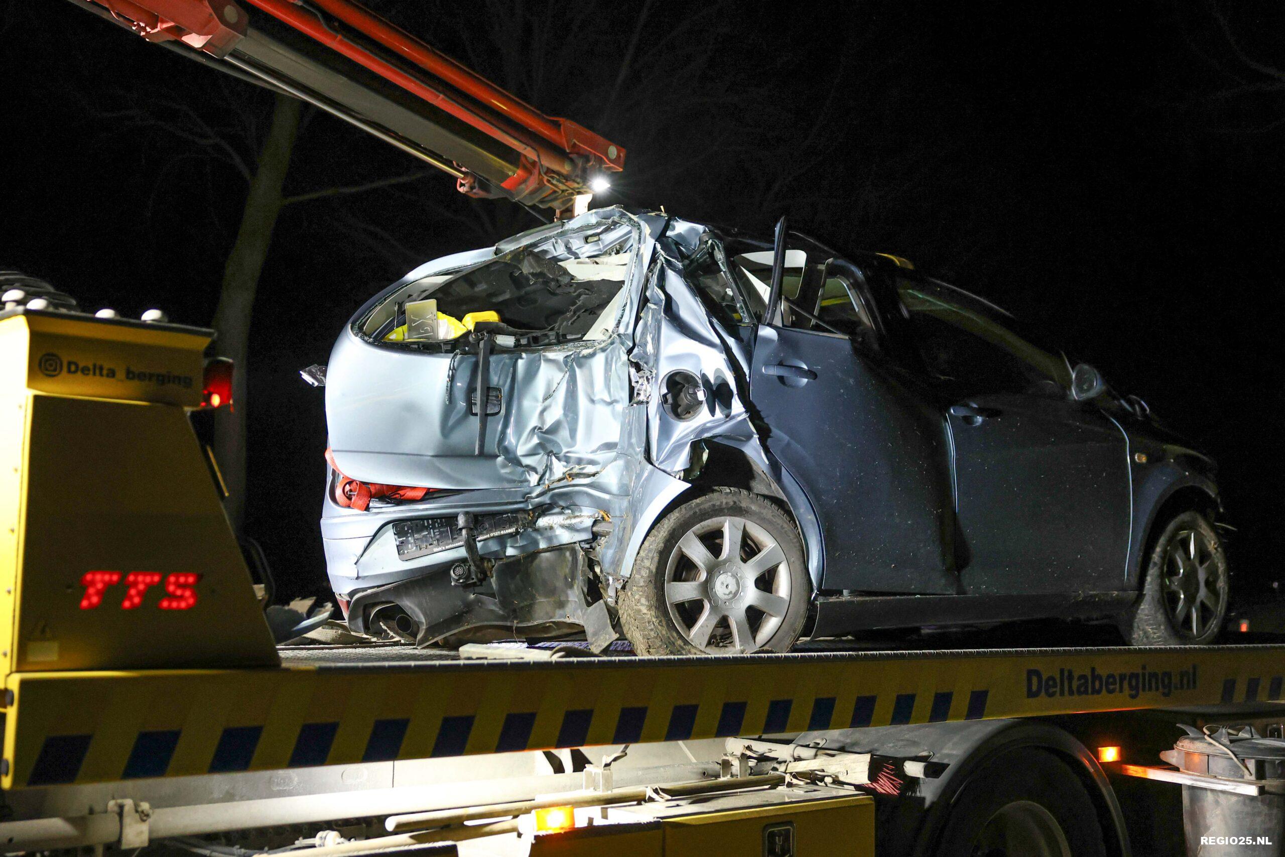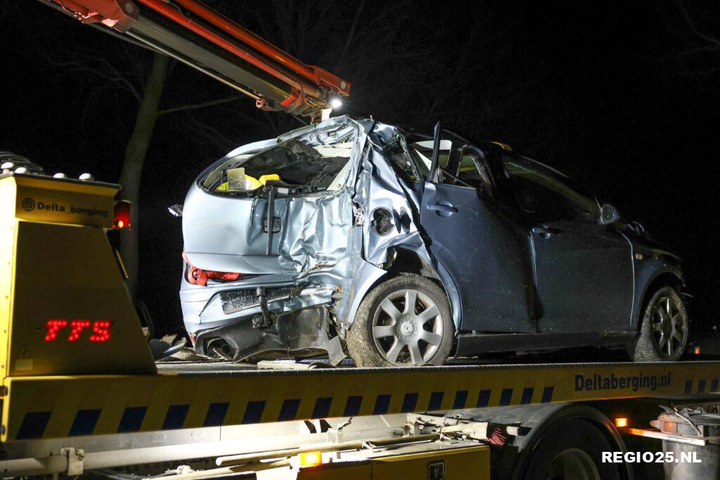 De brandweer heeft de zwaarbeschadigde auto veiliggesteld, waarna een berger het wrak heeft afgesleept. De Westerringweg was enige tijd in beide richtingen afgesloten voor het verkeer.