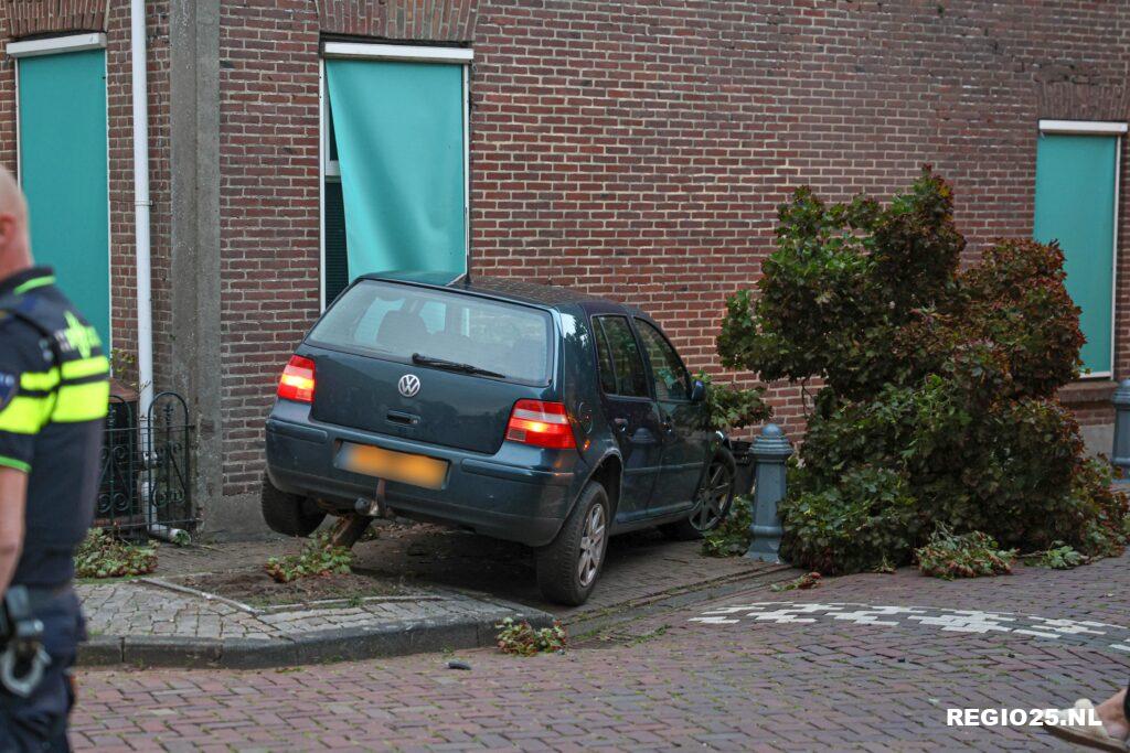 Het ongeluk gebeurde rond 20:45 uur in Wijk 3, ook wel de Schoolstraat genoemd. Een auto raakte een geparkeerde auto, een bloembak en een regenpijp en reed vervolgens aan de andere kant van de straat een boompje doormidden, waarna het voertuig tegen de zijgevel van een woning tot stilstand kwam.