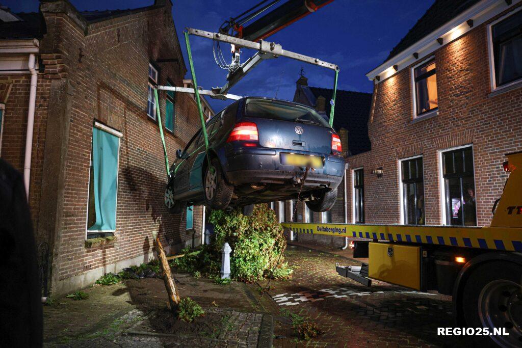 In het oude dorp van Urk heeft dinsdagavond een ongeluk plaatsgevonden, waarna een ravage is ontstaan. In één van de smalle straatjes botste een auto tegen een hoekwoning. De bestuurder, een 19-jarige man, bleek geen rijbewijs te hebben.