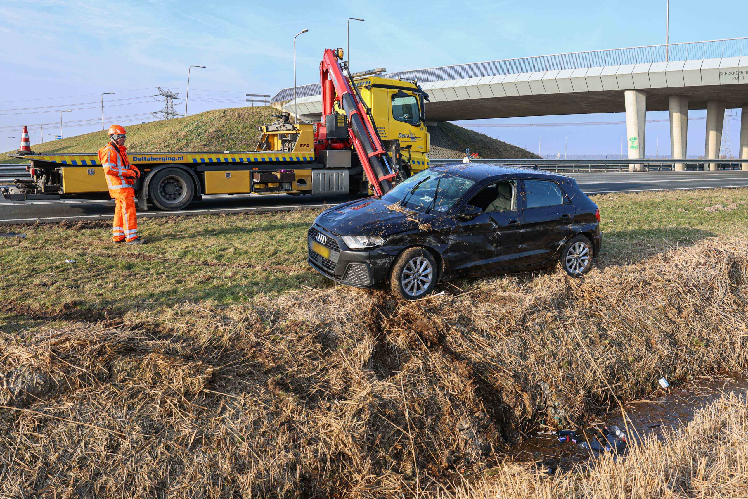 Een berger heeft de auto uit de sloot getrokken en afgesleept. Het verkeer had weinig hinder van het ongeluk.