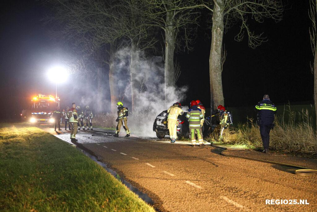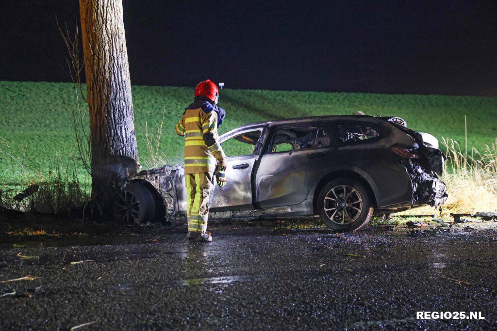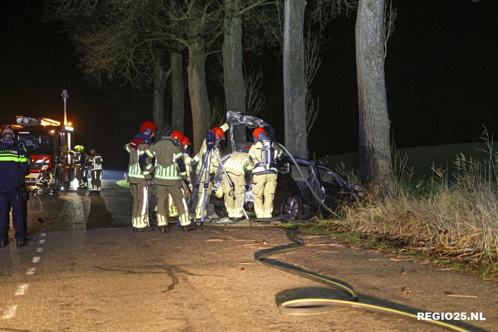 Bij aankomst van de brandweer stond de auto in lichterlaaie. Men heeft de brand geblust. Ondertussen deed de politie onderzoek naar de toedracht van het ongeluk. Het is nog onduidelijk waardoor de auto tegen de boom botste.
