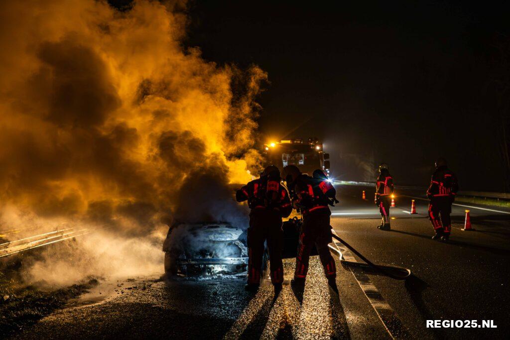 Om 22:50 uur werd de brandweer van Lemmer gealarmeerd. Bij aankomst stond de auto volledig in brand. De snelweg richting Emmeloord werd tijdelijk afgesloten voor een veilige werkruimte. De brandweer had de brand snel geblust, maar kon niet voorkomen dat de auto compleet verloren ging.