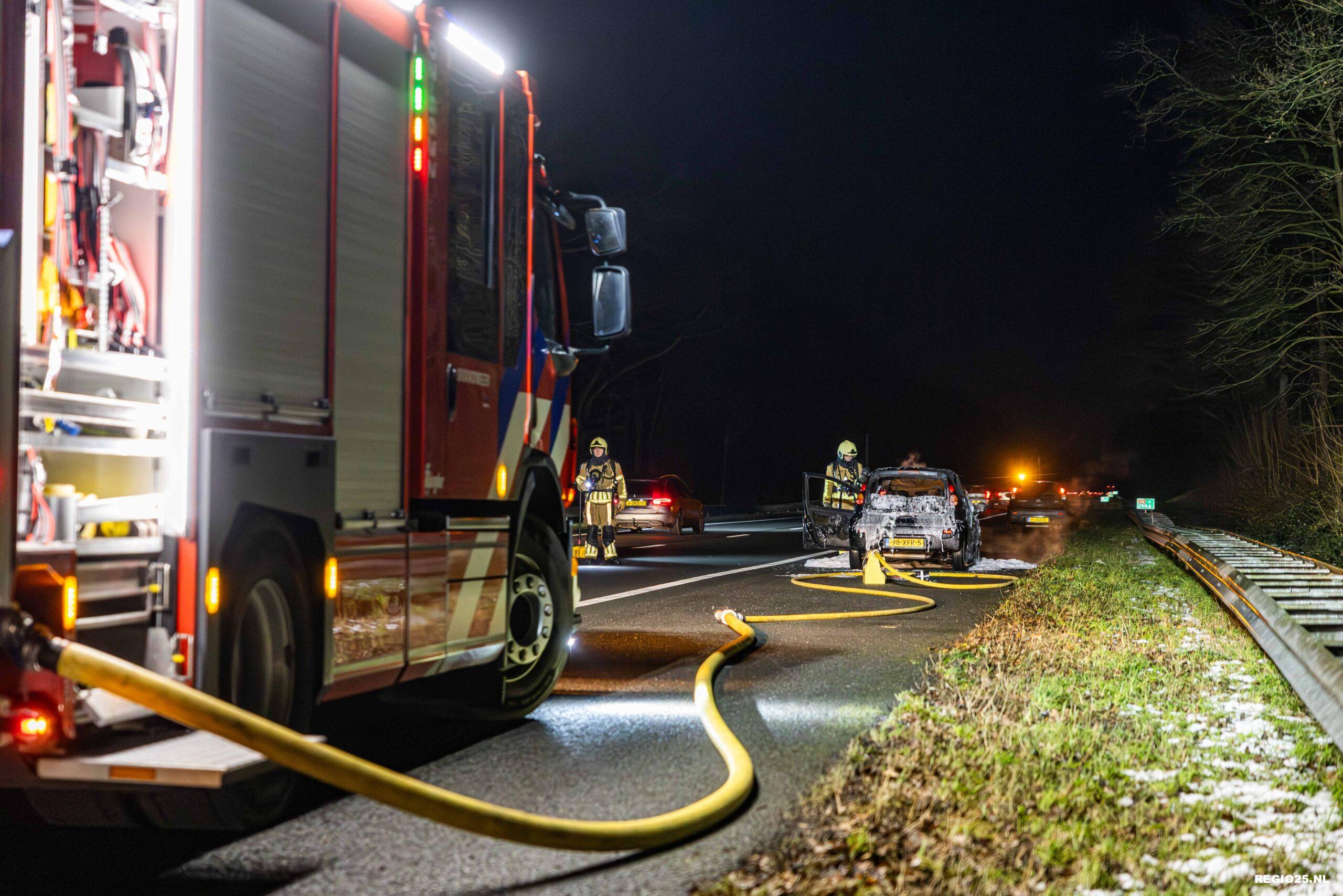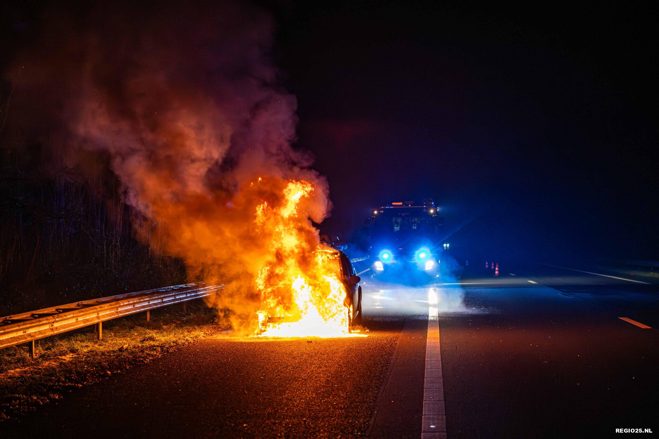 Om 22:50 uur werd de brandweer van Lemmer gealarmeerd. Bij aankomst stond de auto volledig in brand. De snelweg richting Emmeloord werd tijdelijk afgesloten voor een veilige werkruimte. De brandweer had de brand snel geblust, maar kon niet voorkomen dat de auto compleet verloren ging.