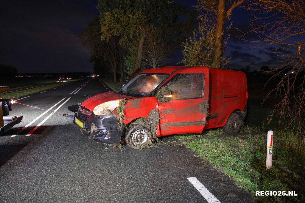 Langs de Banterweg (N718) tussen Emmeloord en Bant is zaterdag even voor 17:30 uur een bestelauto in een sloot terechtgekomen.