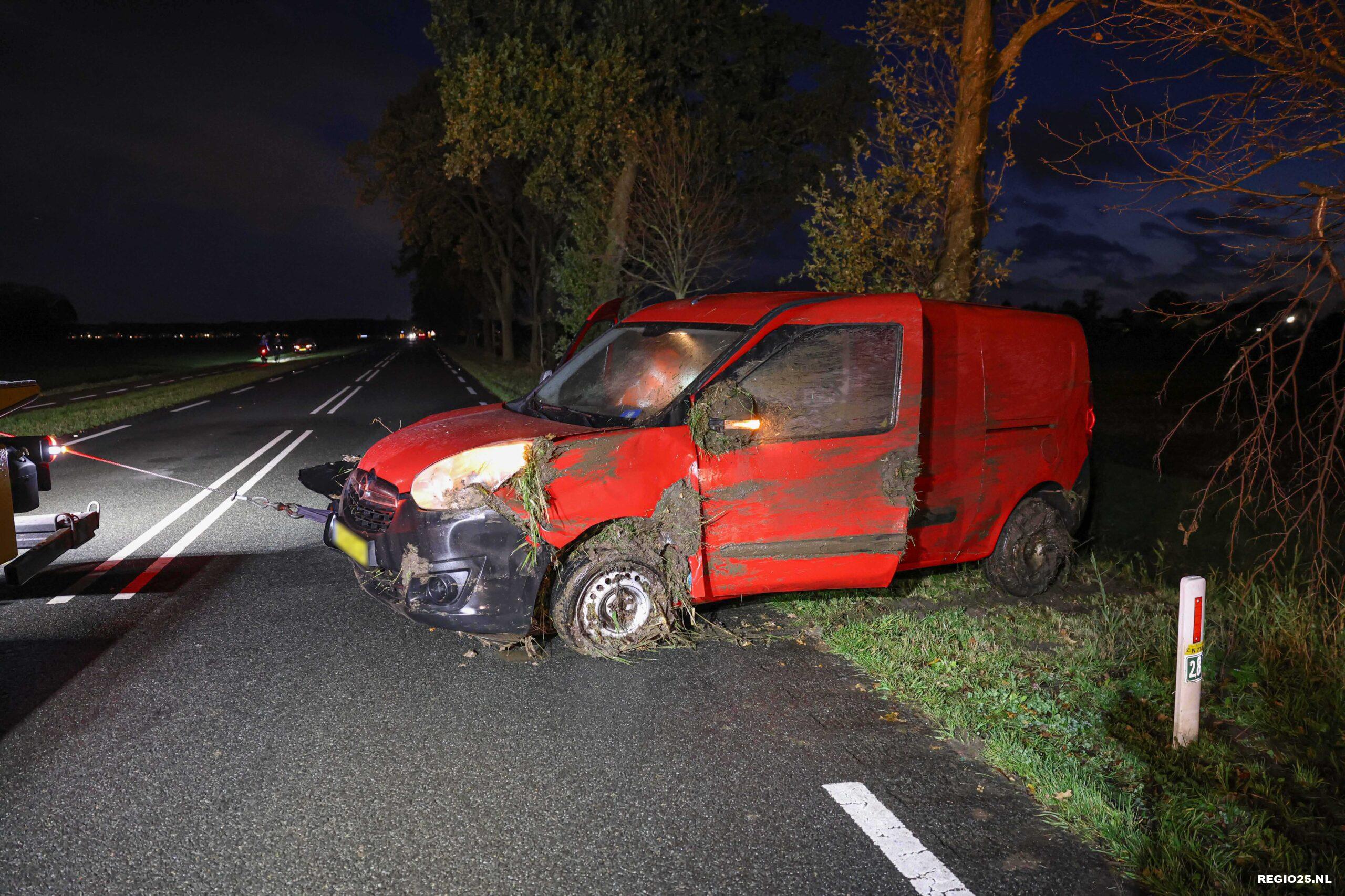 In de bestelauto zaten twee mensen. Zij konden op eigen kracht uit het voertuig komen. De man raakte niet gewond. De bijrijdster, een vrouw, is ter controle per ambulance naar een ziekenhuis gebracht. Volgens de politie viel het letsel mee.