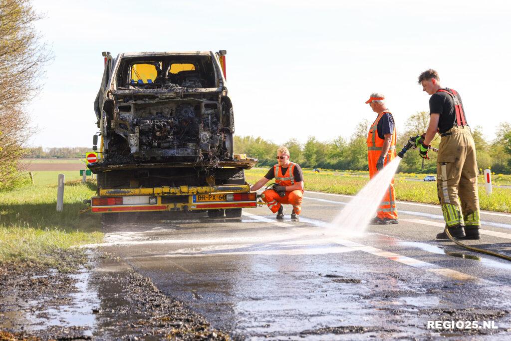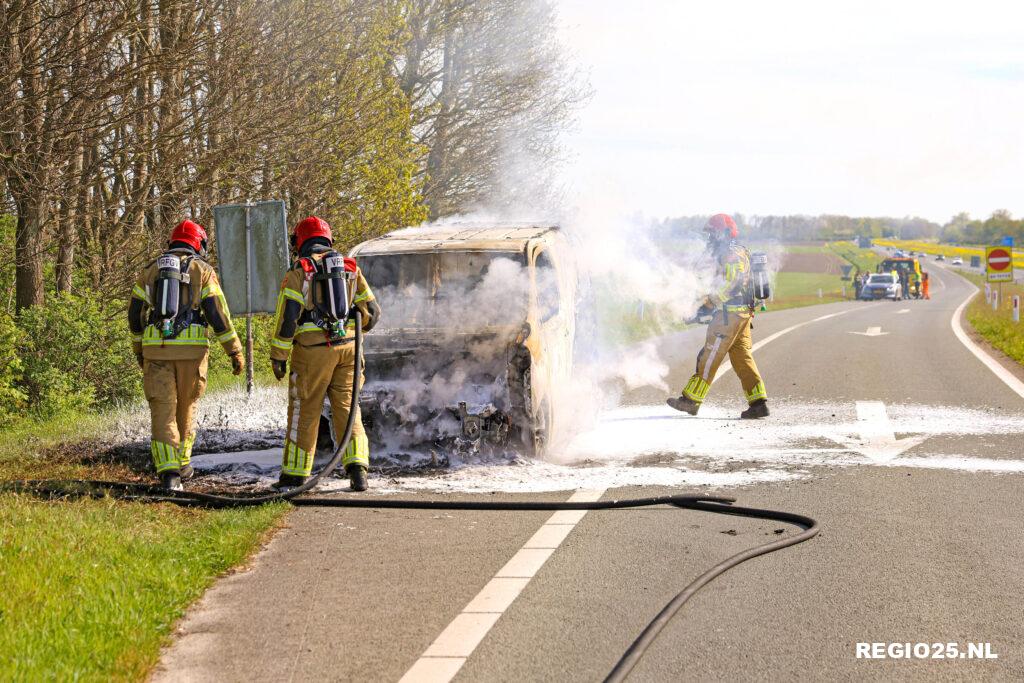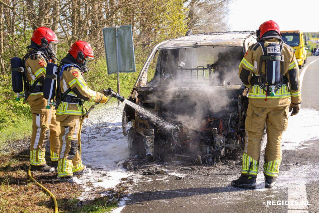 Waarschijnlijk was een technisch mankement de oorzaak van de brand. Een berger heeft de uitgebrande bestelbus afgesleept, waarna de brandweer het wegdek heeft schoongemaakt.