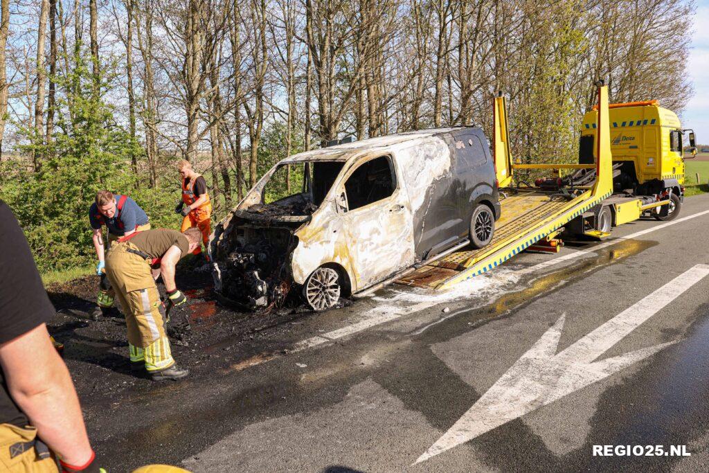 Waarschijnlijk was een technisch mankement de oorzaak van de brand. Een berger heeft de uitgebrande bestelbus afgesleept, waarna de brandweer het wegdek heeft schoongemaakt.