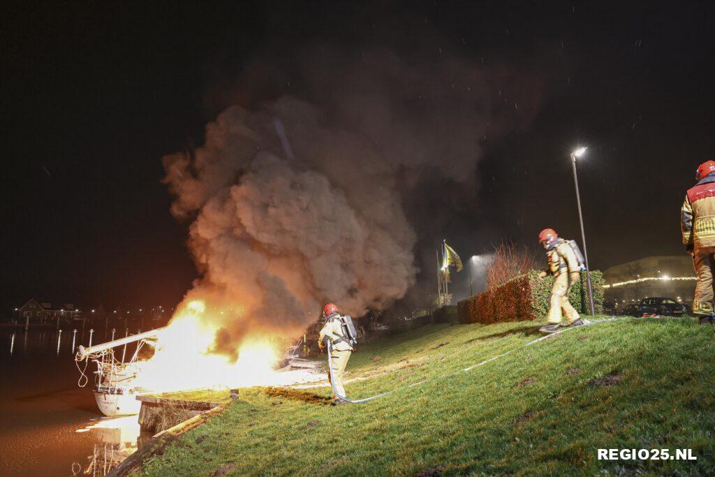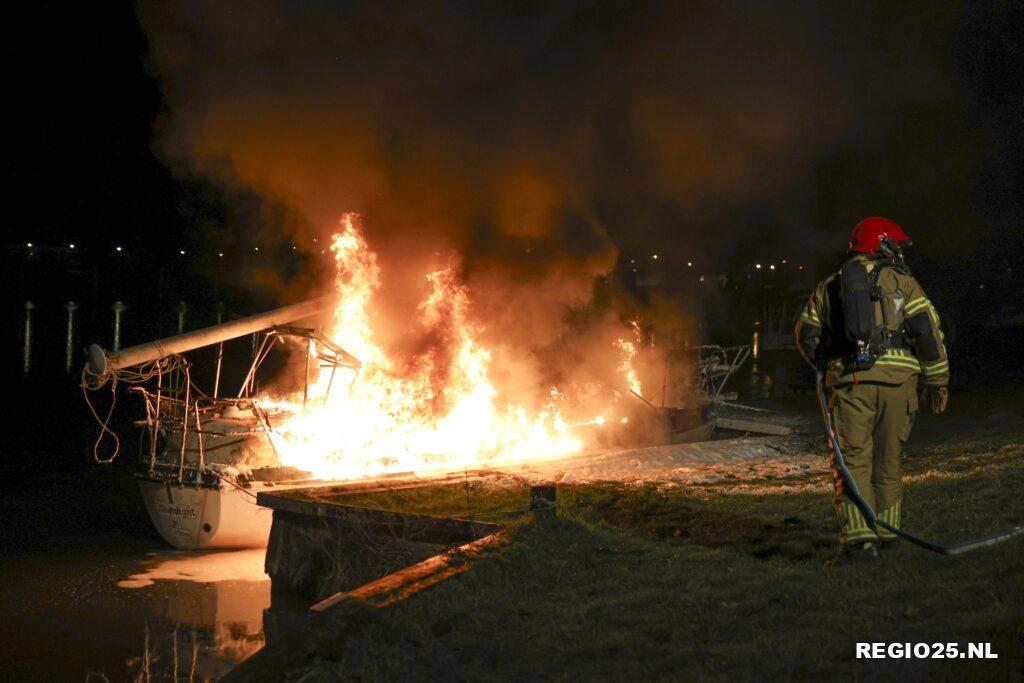 Emmeloord – In de haven bij het Van der Valk hotel in Emmeloord is op de vroege zondagochtend een zeilboot in vlammen opgegaan.