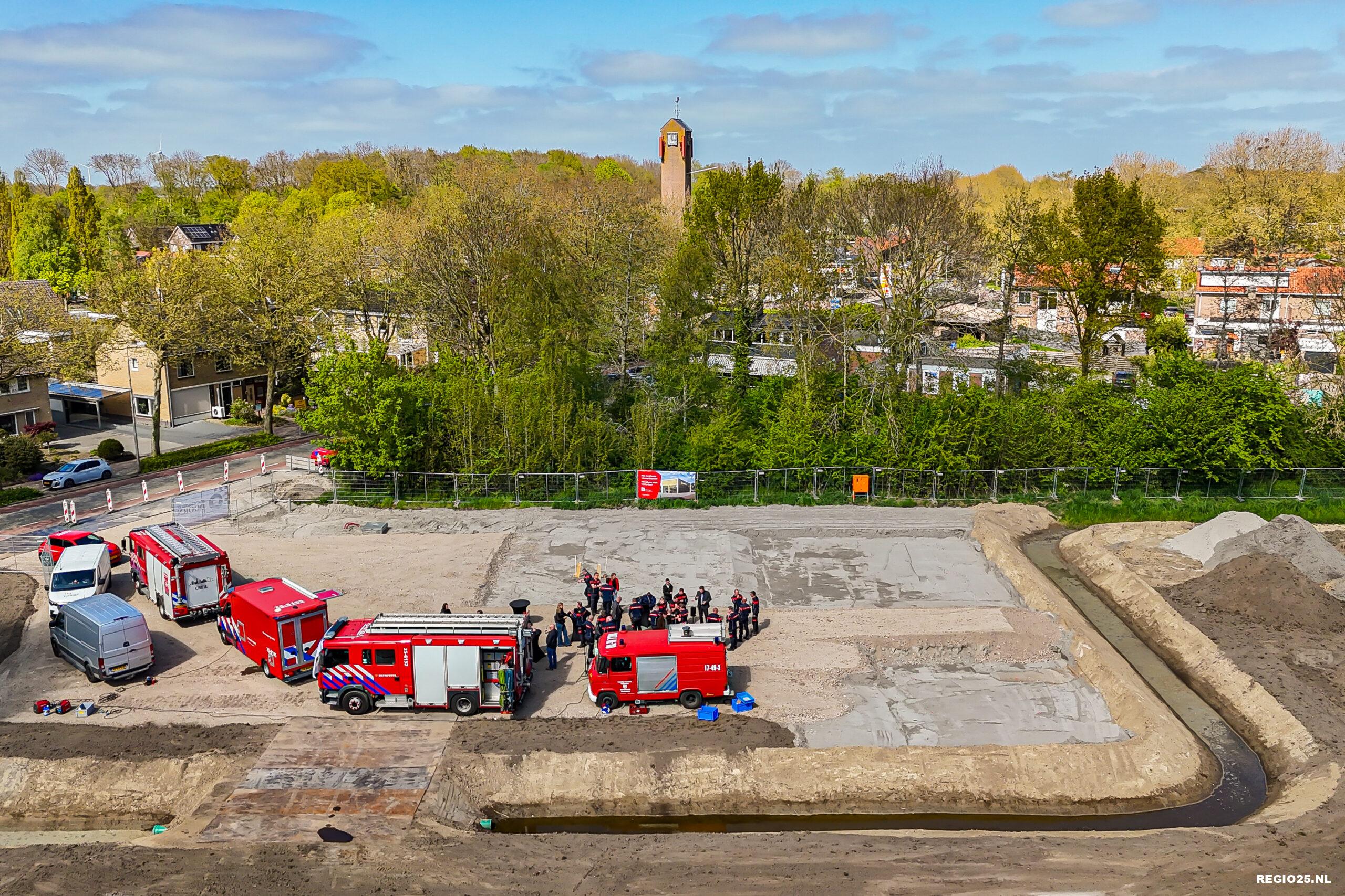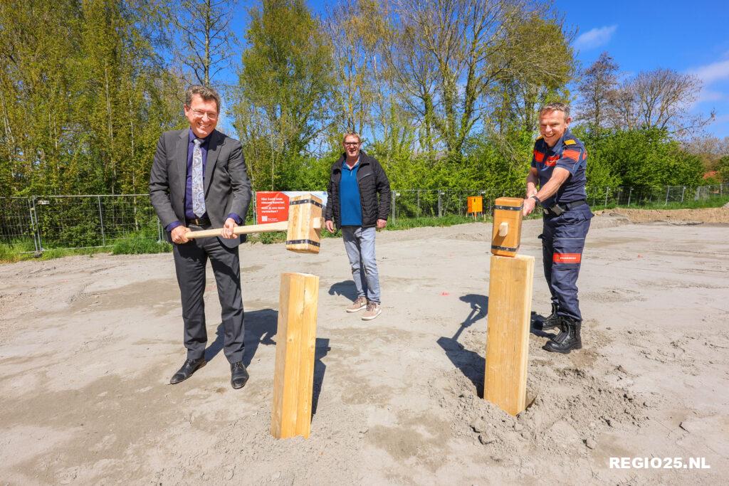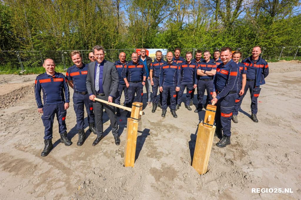 In aanwezigheid van de brandweervrijwilligers van Creil sloegen waarnemend commandant Joep Rozendal en burgemeester Roger de Groot symbolisch de eerste palen in de grond voor de tweede nieuwe kazerne in de Noordoostpolder.