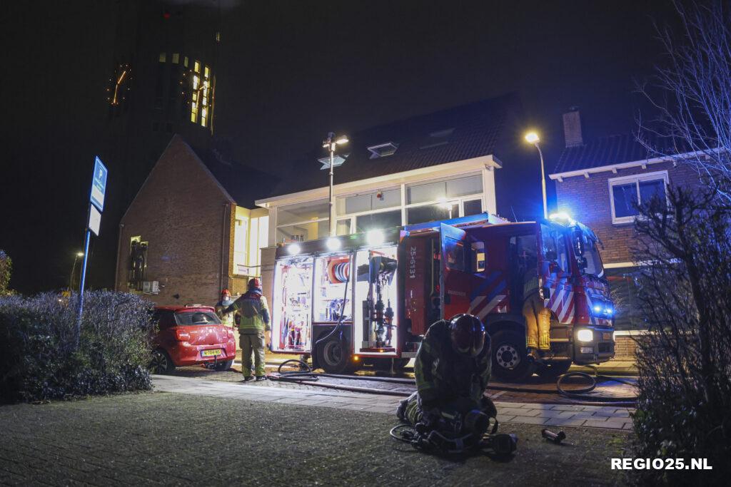 Emmeloord – Achter de tandartspraktijk aan de Onder de Toren in Emmeloord is in de nacht van zaterdag op zondag rond 01:00 uur brand ontdekt.