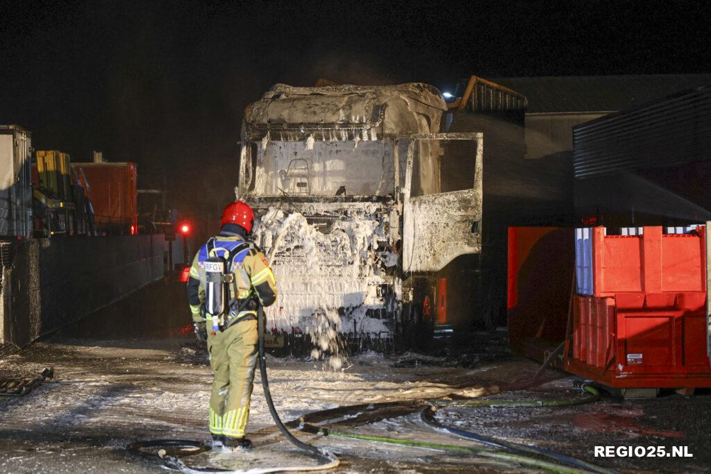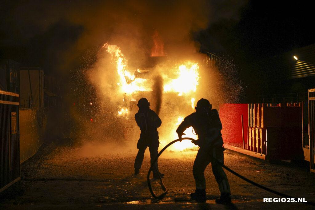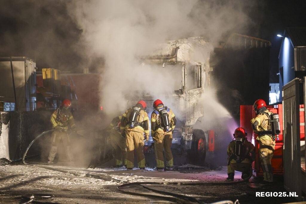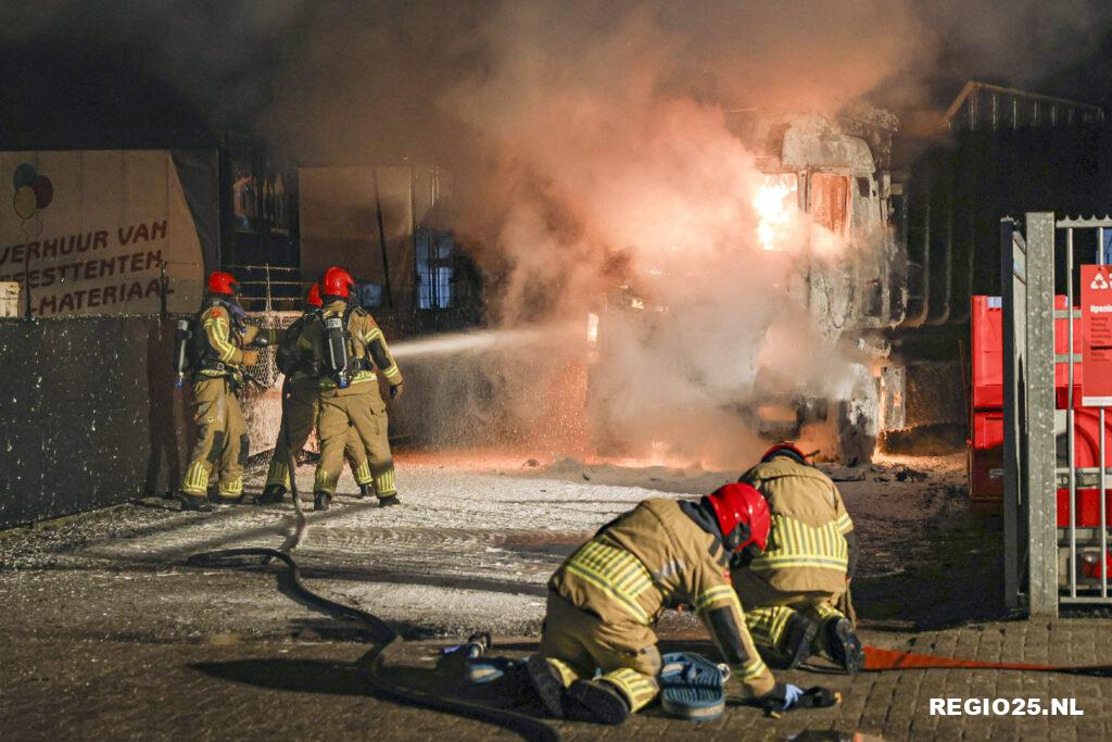 De container achterop de vrachtwagen vatte geen vlam omdat deze leeg was. De brandweer wist te voorkomen dat de brand oversloeg naar de vlakbij geparkeerde trailers en het naastgelegen bedrijfspand.