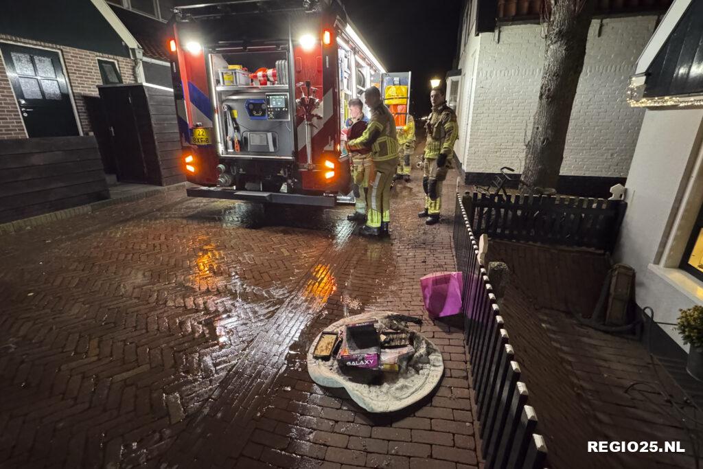 De bewoners en een buurman zijn gecontroleerd door ambulancepersoneel vanwege rookinhalatie, maar dit bleek mee te vallen. De zwartgeblakerde vuurwerkresten zijn naar buiten gebracht en lagen op straat om af te koelen.