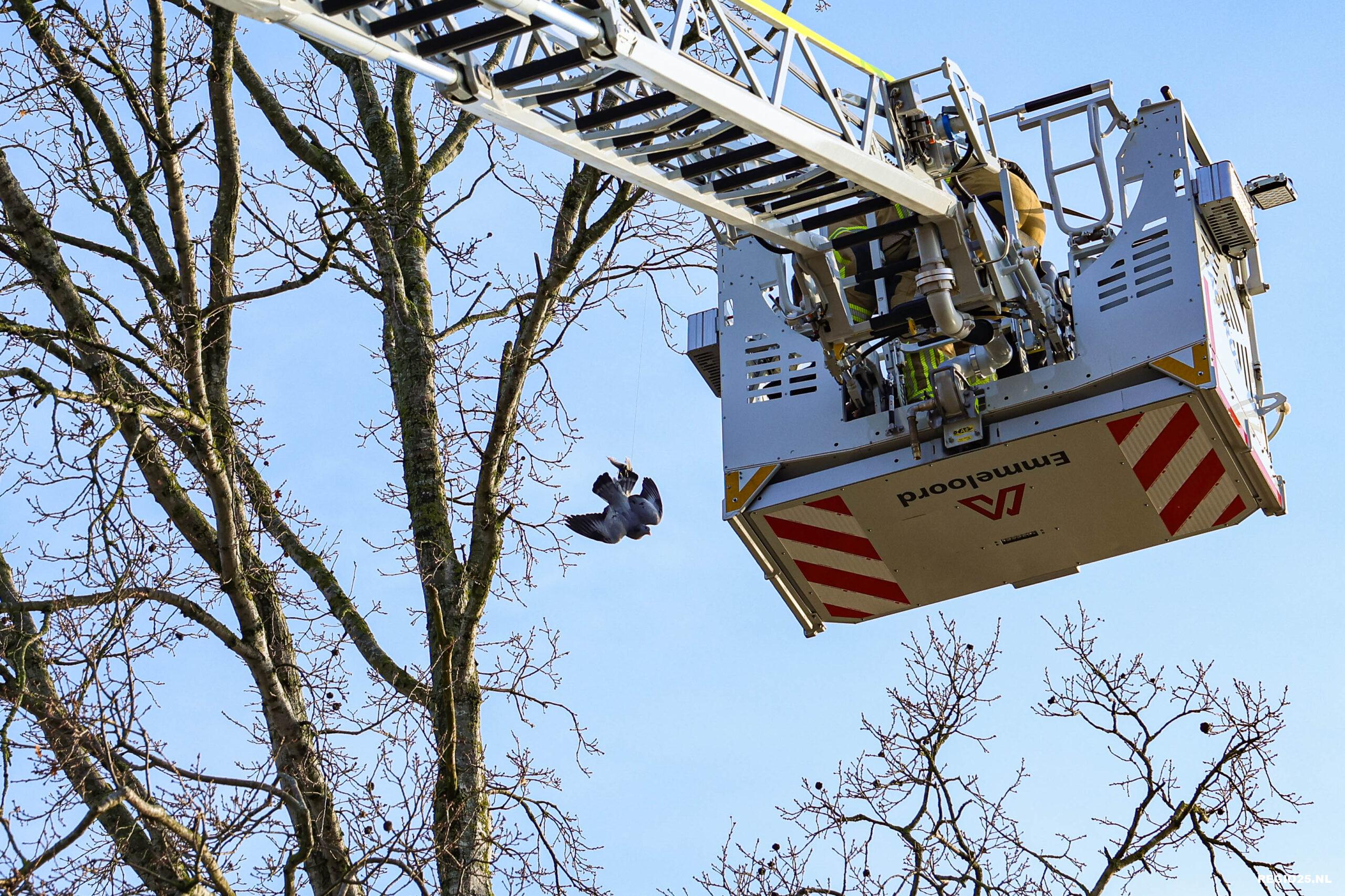 Brandweer redt vasthangende duif uit boom