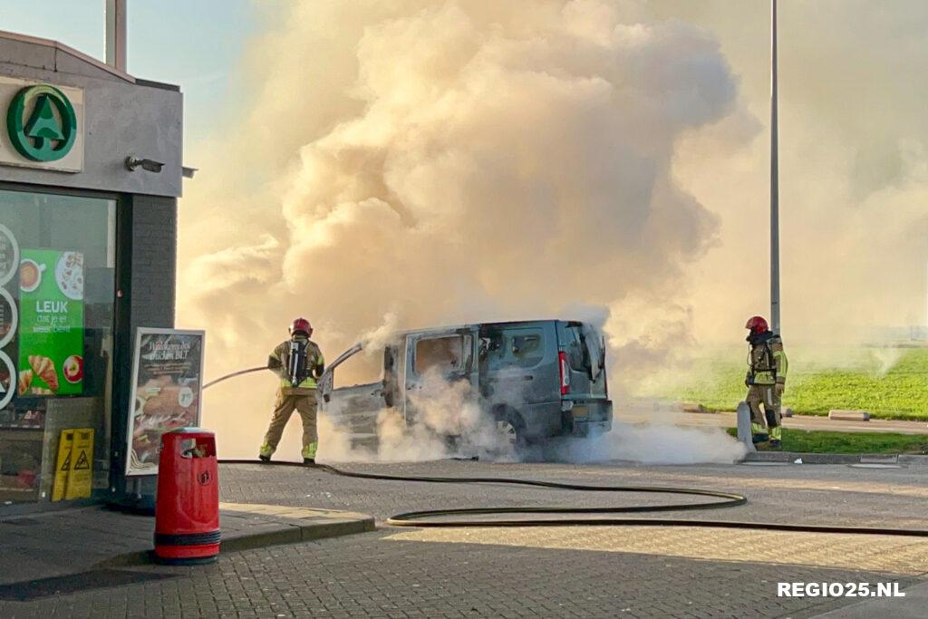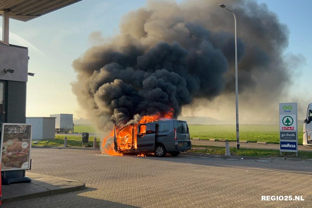 Tijdens het blussen van de brand was het tankstation afgesloten. Inmiddels is het busje afgesleept door een berger.