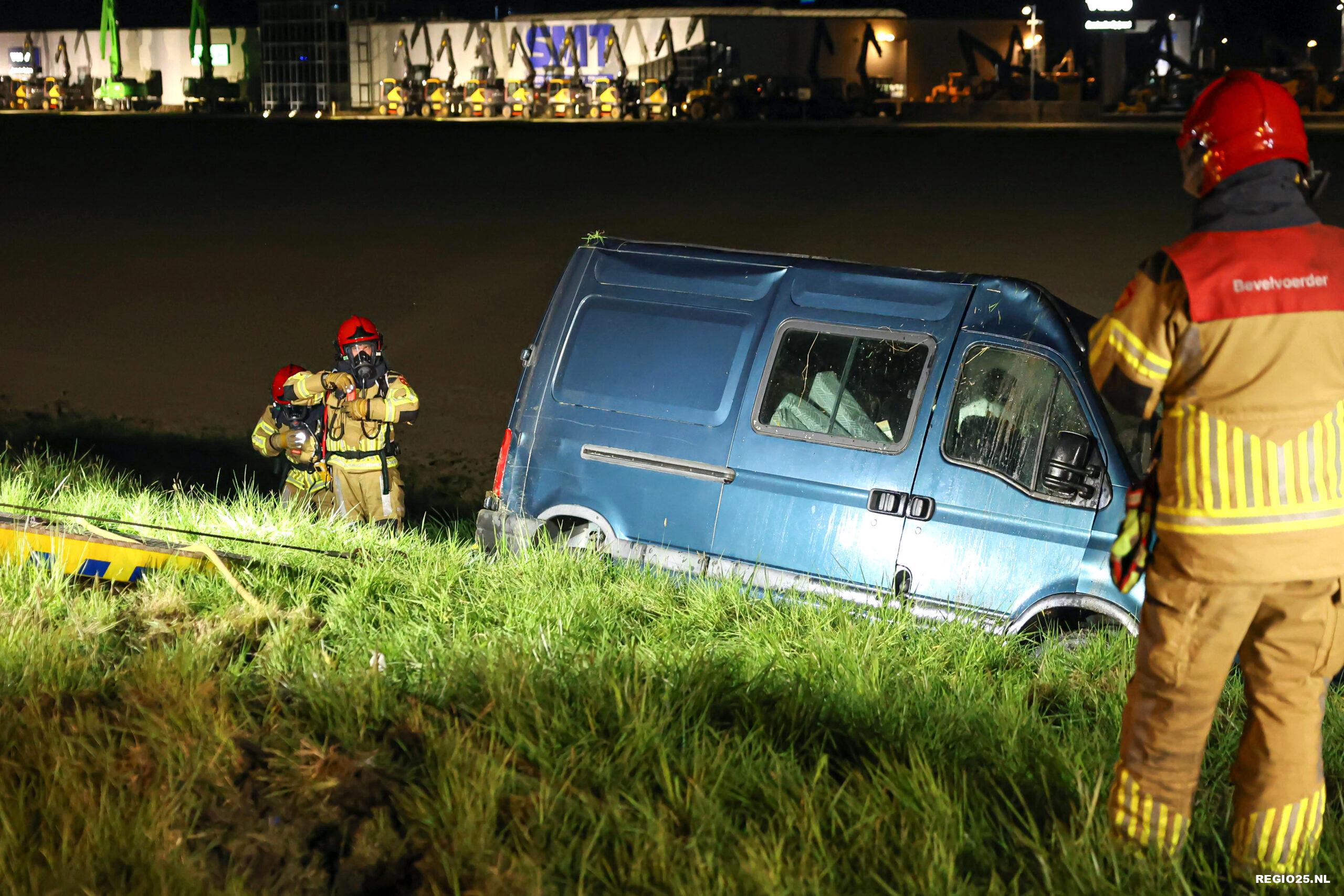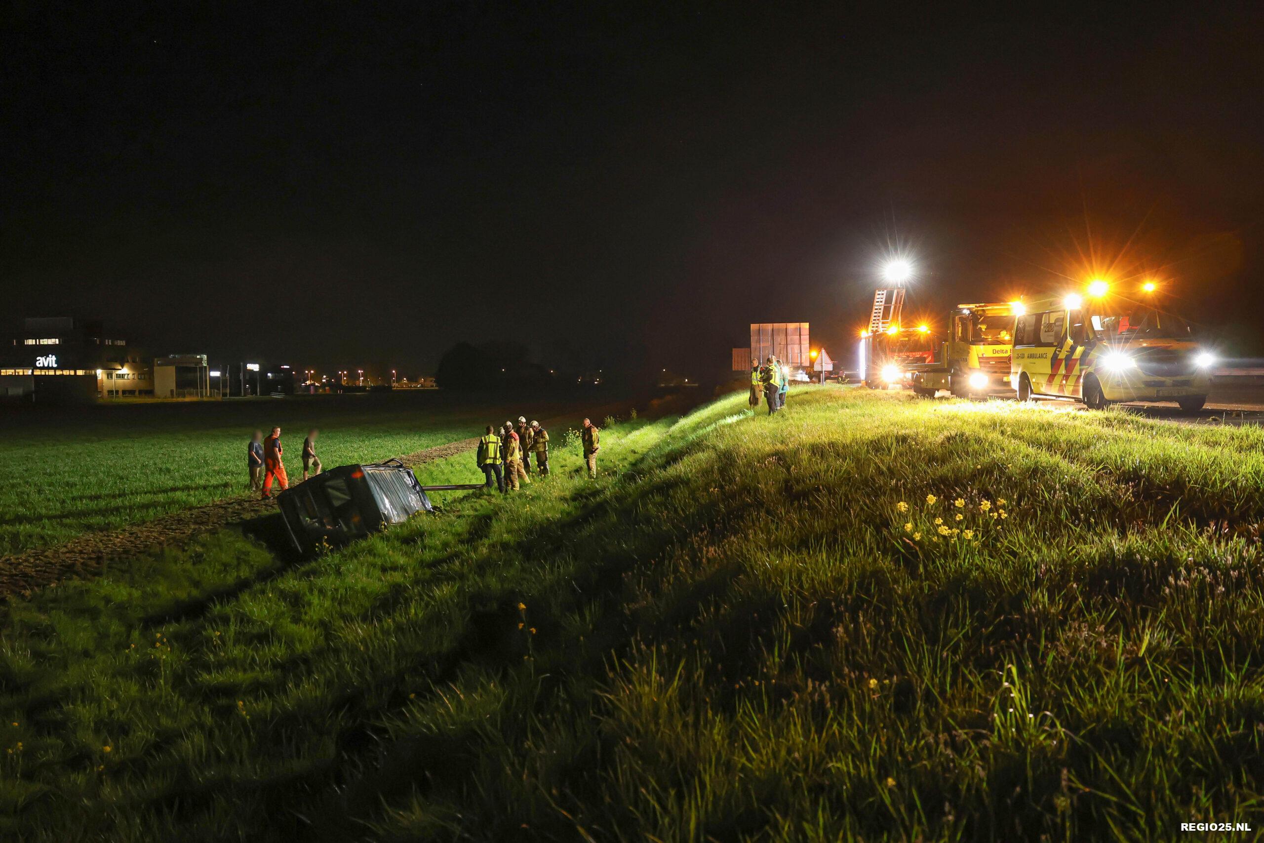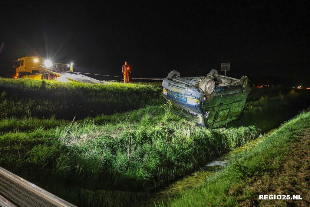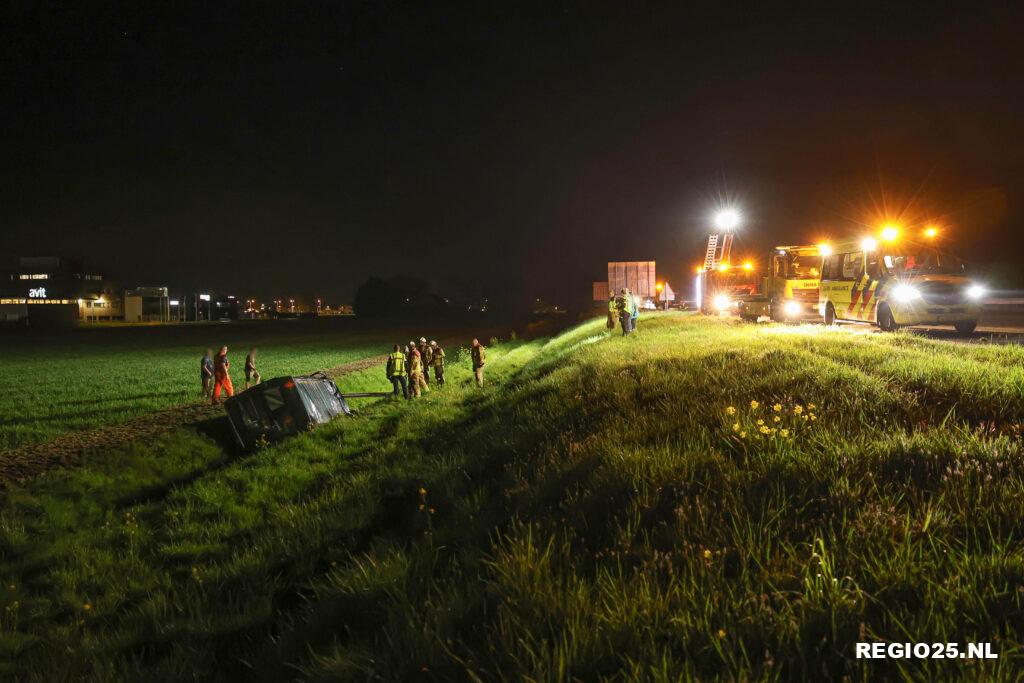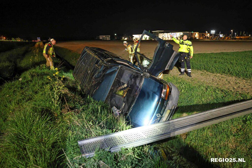 De bestuurder raakte gewond en moest door de hulpdiensten over de sloot worden geholpen. De man is ter controle per ambulance naar een ziekenhuis gebracht.