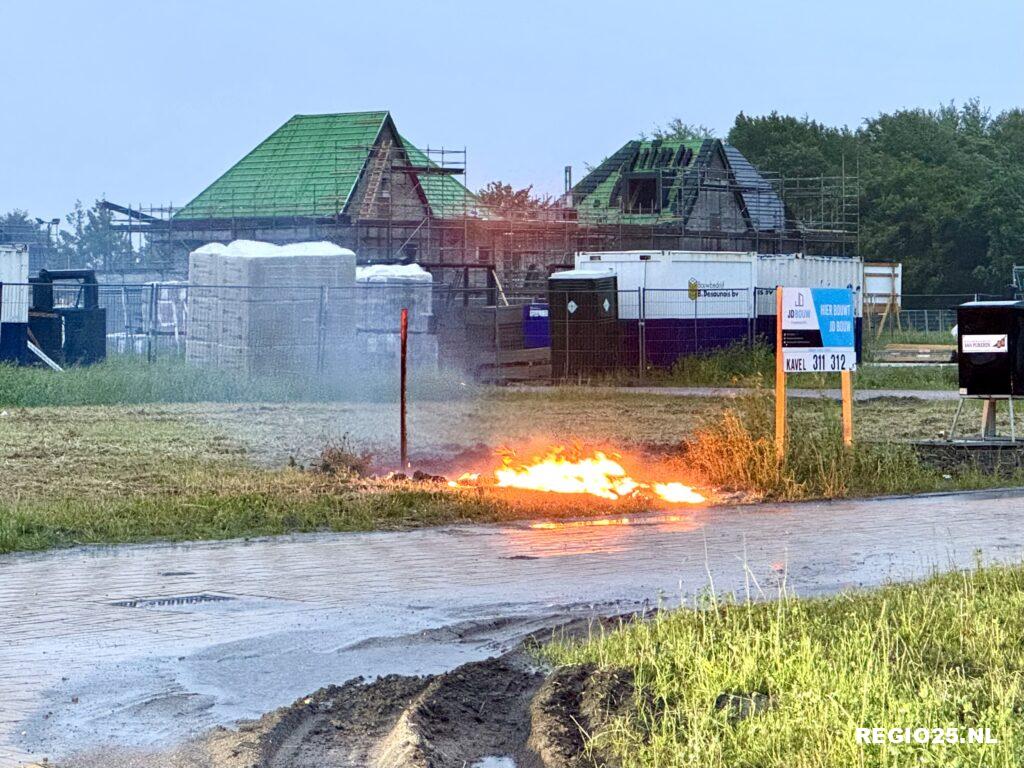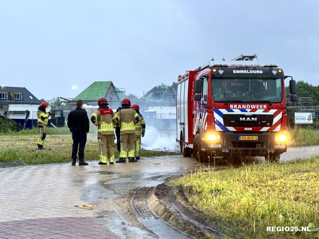 Het regende pijpenstelen, maar in het nieuwste gedeelte van woonwijk Emmelhage in Emmeloord is zondagochtend een dixi tot de grond toe afgebrand.