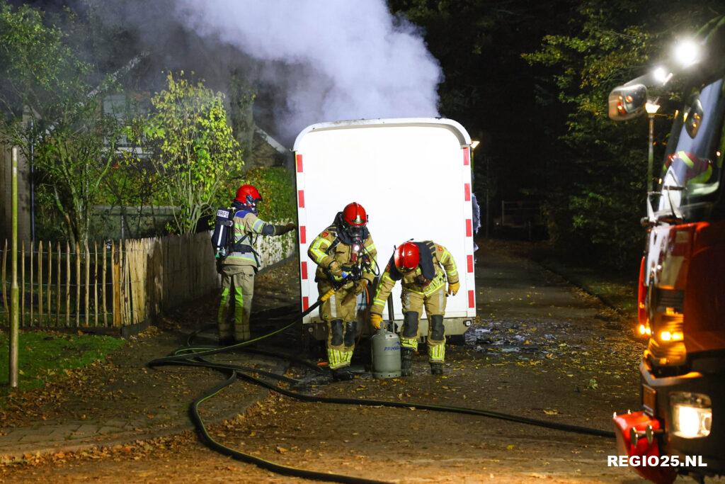 De brand werd rond 01:30 uur ontdekt door omwonenden. Zij belden de brandweer, die met spoed ter plaatse kwam. De brand ging gepaard met flinke vlammen en veel rookontwikkeling. De brandweer had de brand snel onder controle en wist twee gasflessen veilig te stellen.
