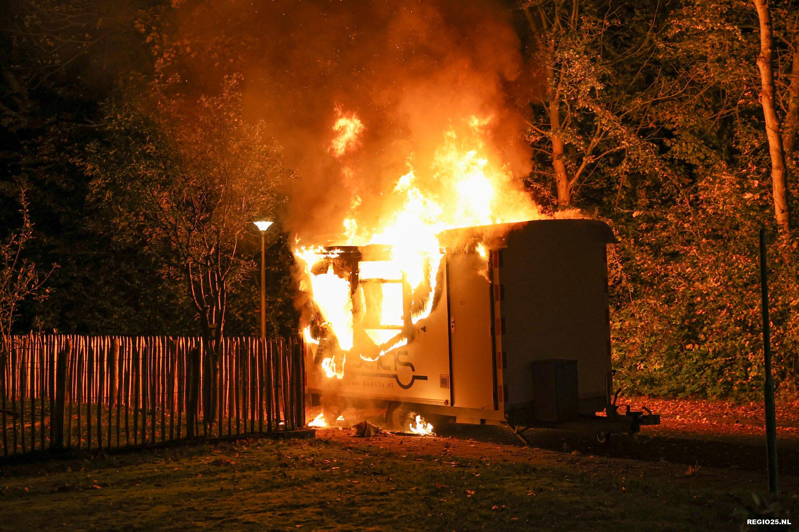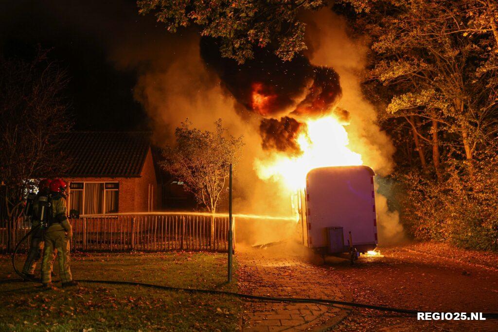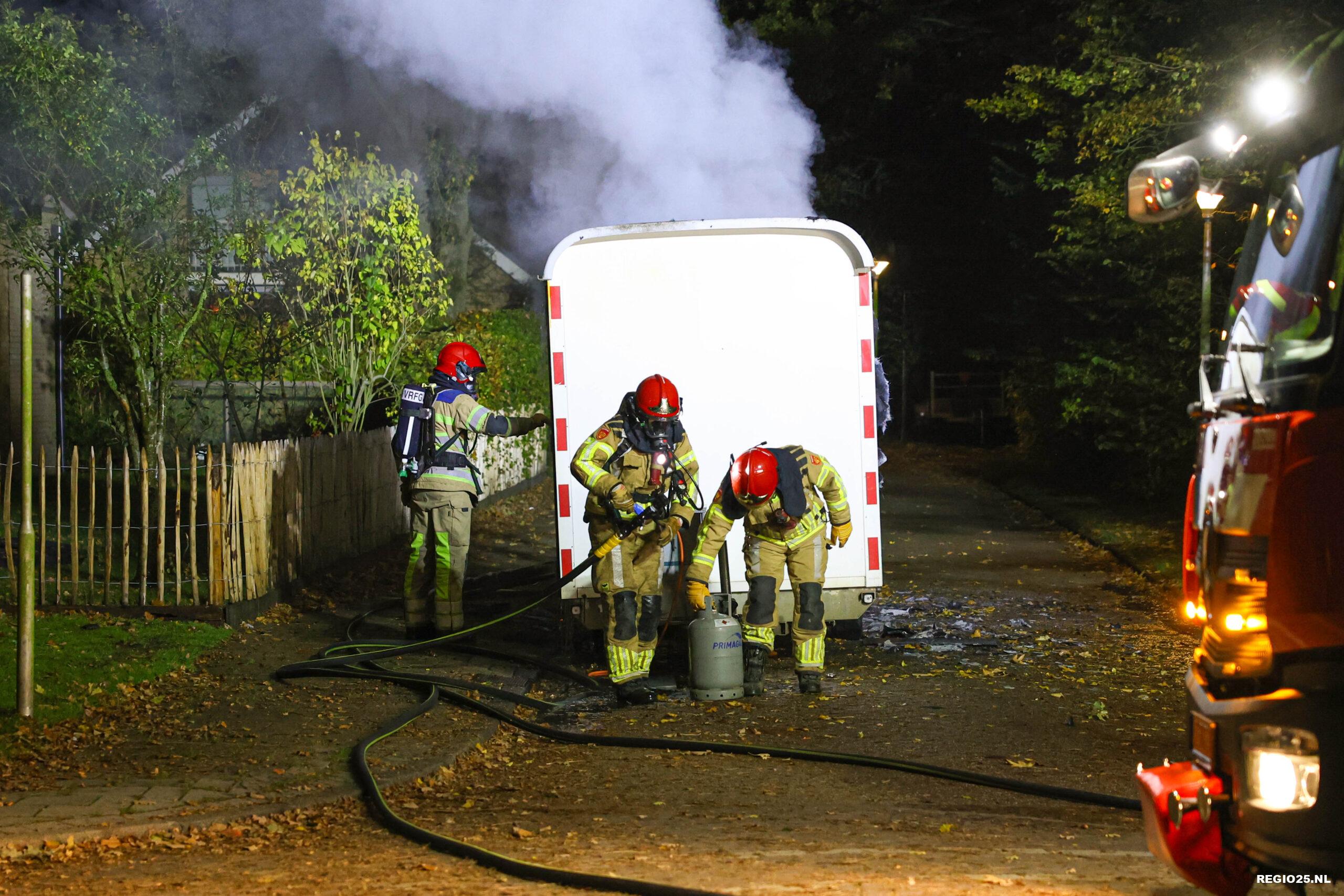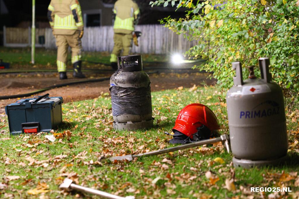 De brand werd rond 01:30 uur ontdekt door omwonenden. Zij belden de brandweer, die met spoed ter plaatse kwam. De brand ging gepaard met flinke vlammen en veel rookontwikkeling. De brandweer had de brand snel onder controle en wist twee gasflessen veilig te stellen.