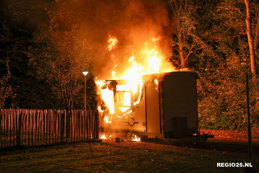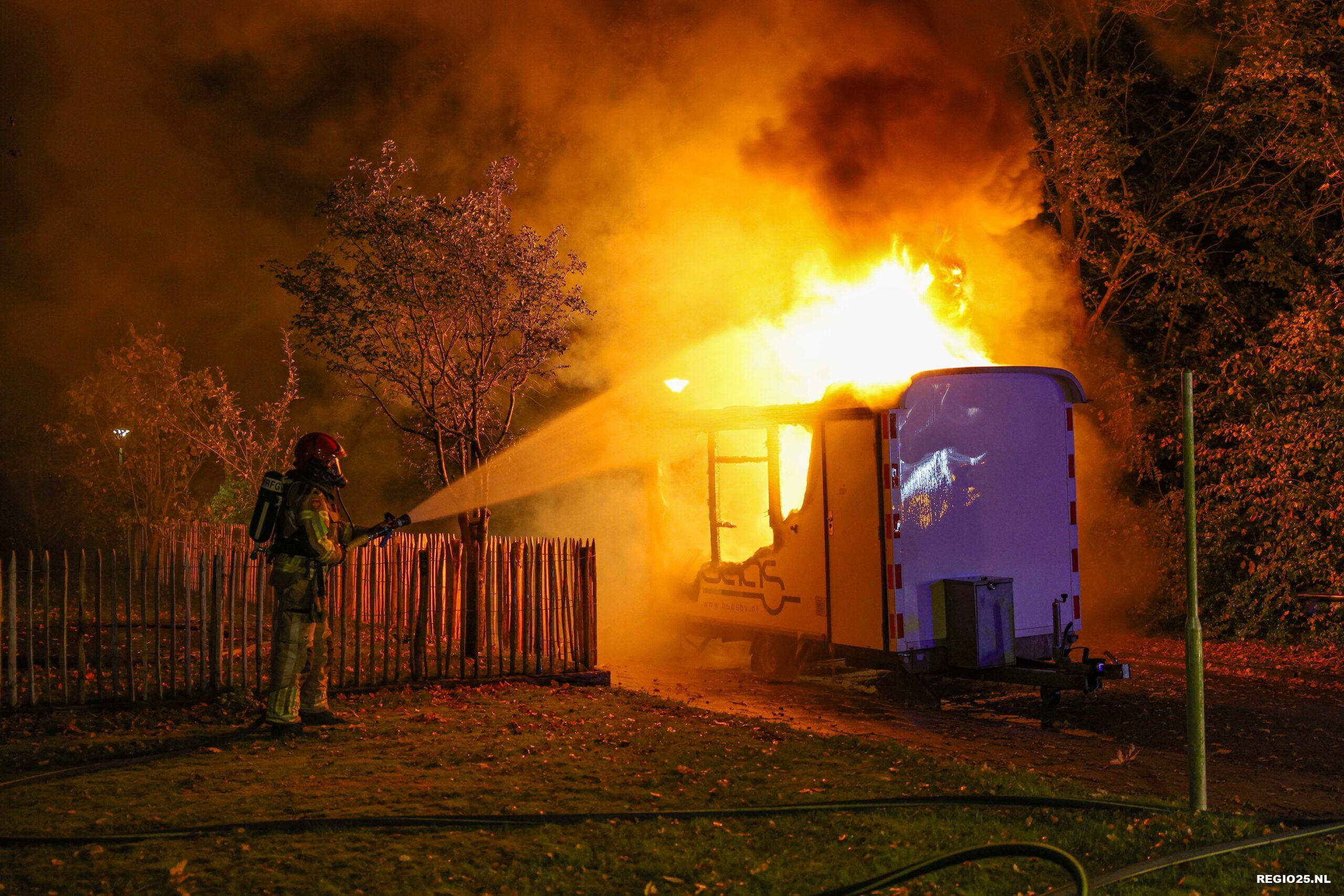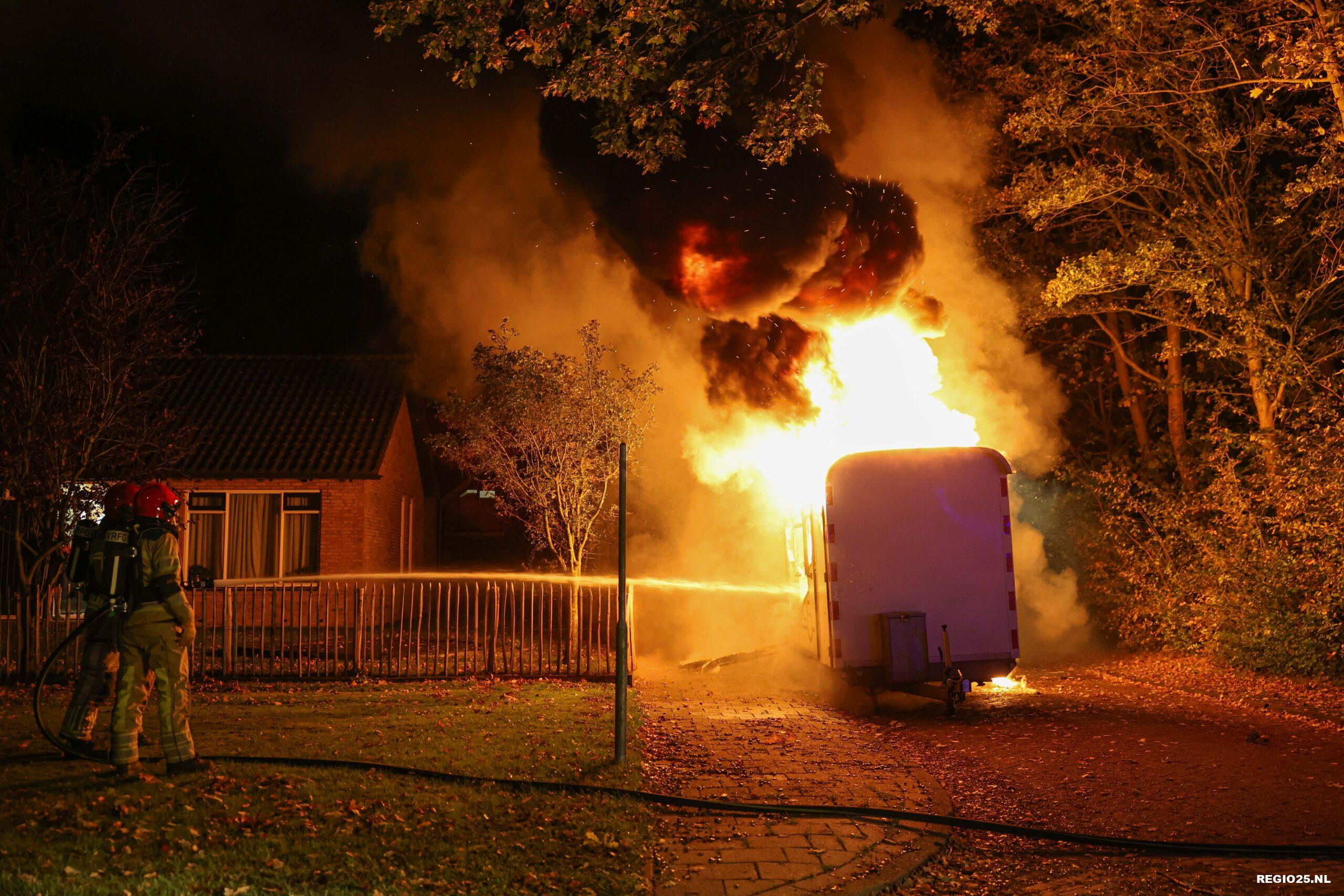 De brand werd rond 01:30 uur ontdekt door omwonenden. Zij belden de brandweer, die met spoed ter plaatse kwam. De brand ging gepaard met flinke vlammen en veel rookontwikkeling. De brandweer had de brand snel onder controle en wist twee gasflessen veilig te stellen.