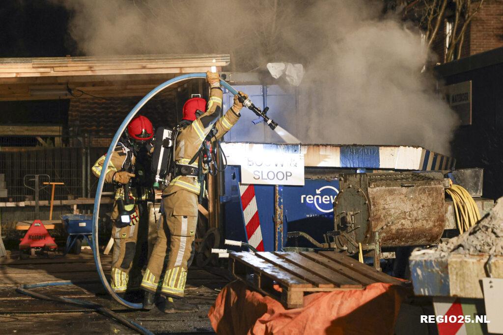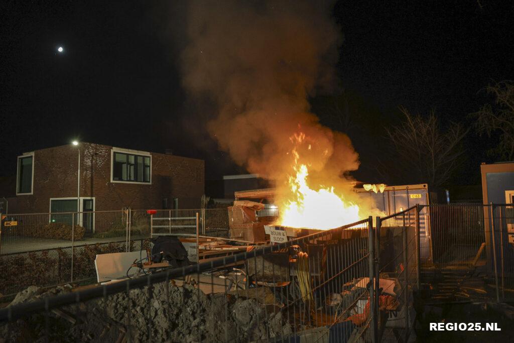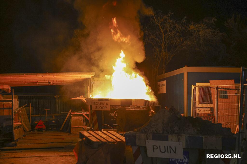 Op een afgesloten bouwplaats sloegen de vlammen uit een grote container vol met bouw- en sloopafval. Buurtbewoners ontdekten de brand en belden de brandweer.