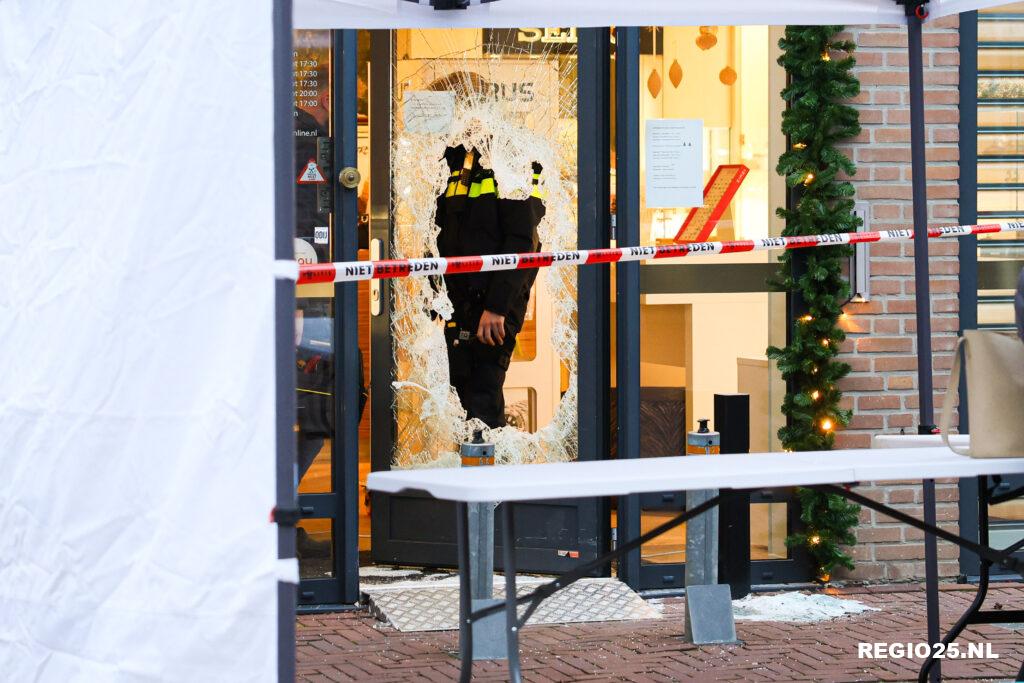 Rond 04:00 uur kwam er een inbraakalarm binnen bij de politie. Agenten waren snel ter plaatse, maar de inbrekers waren al met buit en al gevlucht. Volgens de politie gingen de daders er vandoor in een zwarte auto met opvallende blauwe remklauwen richting de Nagelerweg en Randweg.