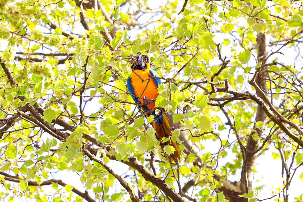 De ara, een op een papegaai lijkende vogel, vloog maandag weg bij zijn logeeradres aan de Lange Dreef. Jip was hoog in een boom gaan zitten en kwam niet naar beneden. Daarom schakelde zijn oppas de hulp in van dierenambulance Witte Gerrit.