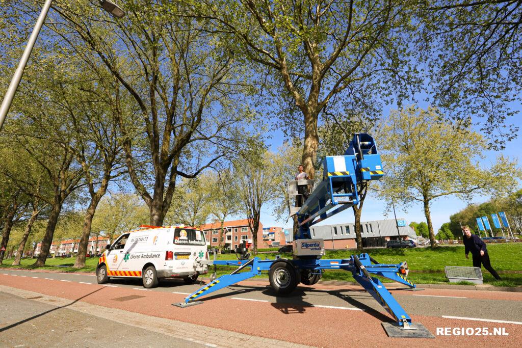 Maandagavond werden lokpogingen geprobeerd, maar zonder succes. Ook de brandweer werd gevraagd, maar die kon niet helpen, aldus de alarmcentrale. “Ervaring leert dat tegen de tijd de brandweer de ladder heeft staan, de vogel wegvliegt.”, vertelde de dierenambulance.