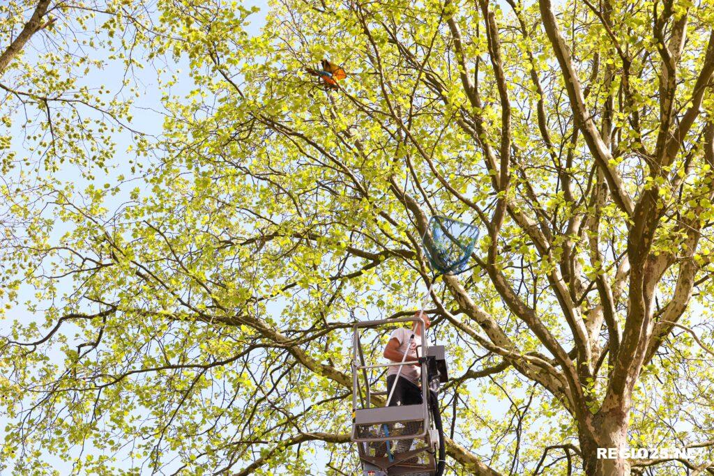 Het laatste plan was het inzetten van een drone. De aanwezige persfotograaf had deze bij zich. Jip reageerde en vloog al snel uit de boom. Buurtbewoners schoten ondertussen te hulp. Gezamenlijk ging men achter de vogel aan.