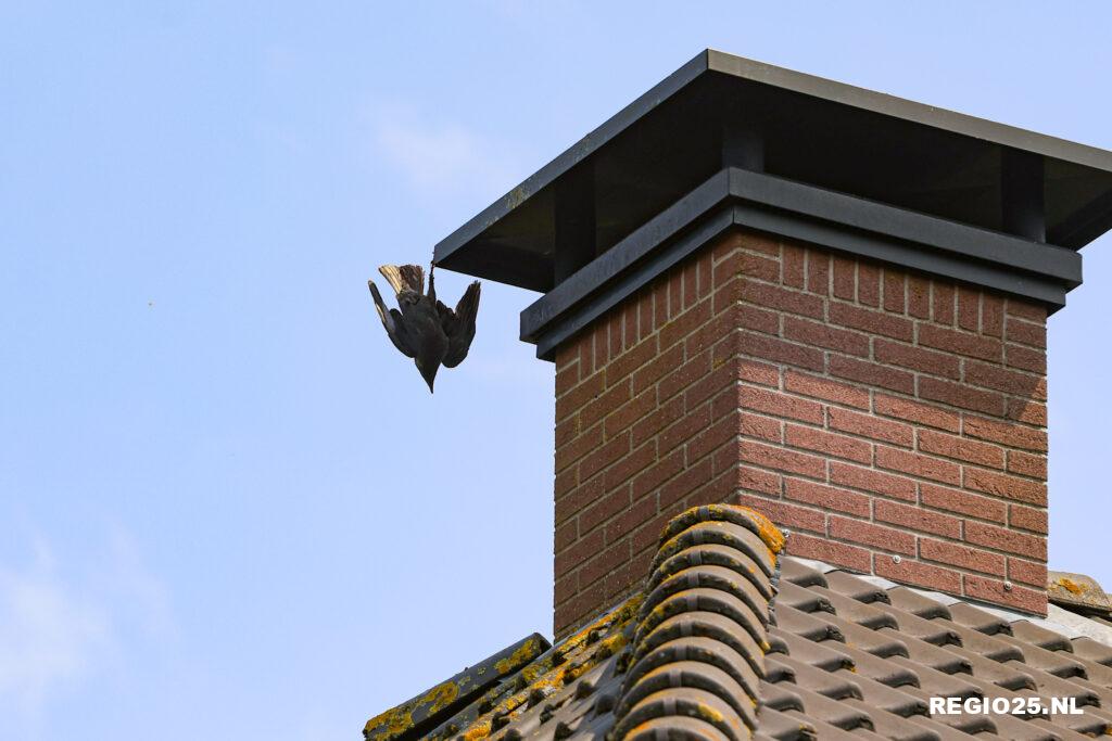 De brandweer en dierenambulance Witte Gerrit zijn woensdagmiddag in actie gekomen voor een kauw die vastzat aan een schoorsteenkap van een woning aan de Fleminghage in Emmeloord.