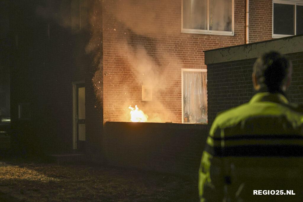 Na de melding omstreeks 06:00 uur kwam de politie als eerste ter plaatse. Agenten hebben de twee bewoners uit huis geholpen. Ondertussen waren er een paar kleine ontploffingen te horen. Deze waren vermoedelijk afkomstig van kleine spuitbussen in de kliko’s.