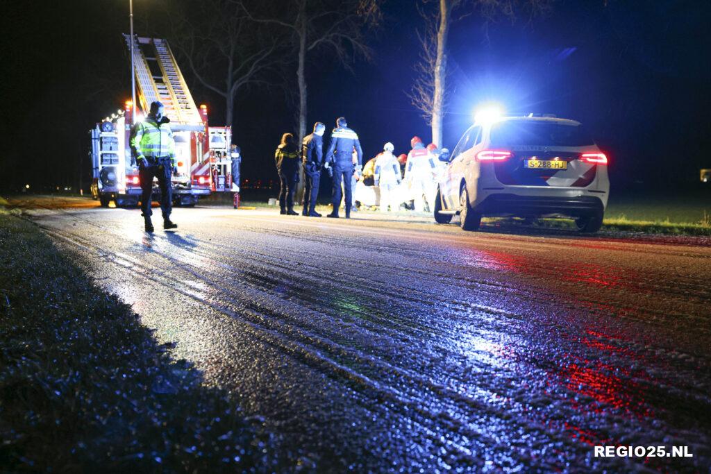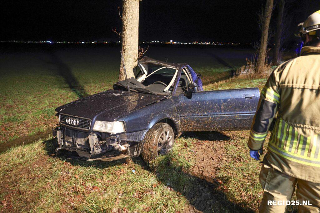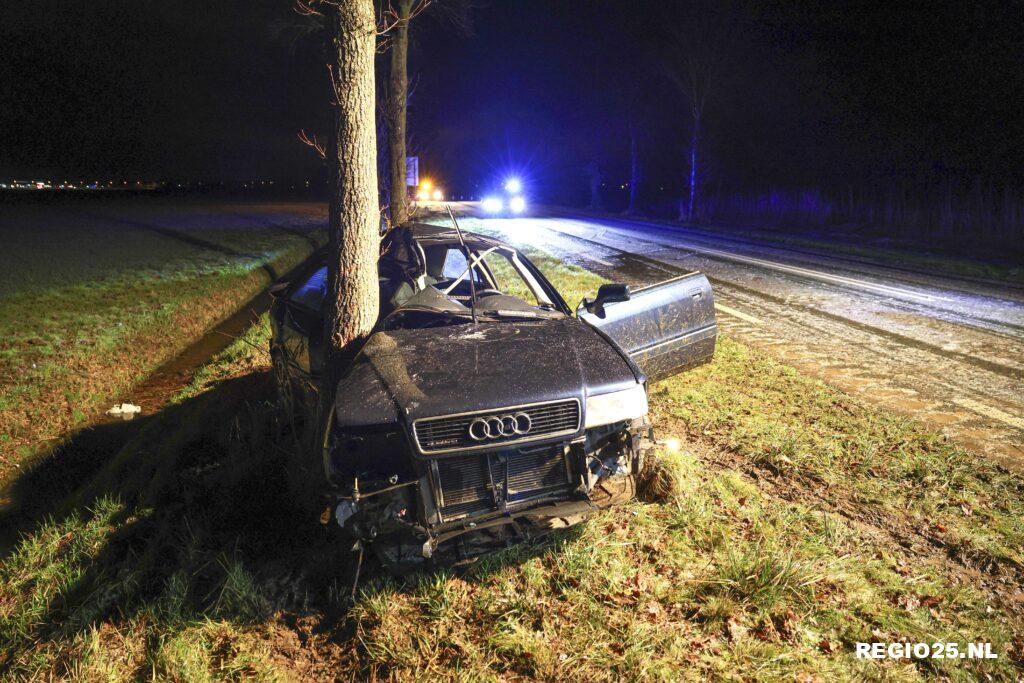 Nog geen twee kilometer verderop, op de Nagelerweg (N716), ging het ook mis. Een auto raakte in de slip en botste met de flank tegen een boom.