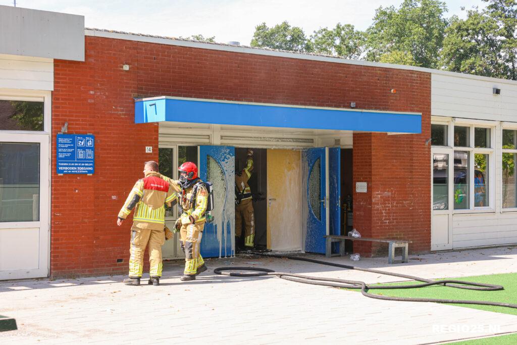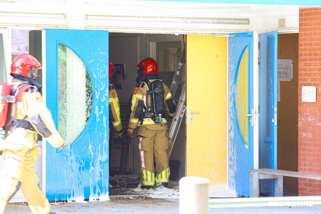Volgens de brandweer stond de meterkast in brand bij de ingang van de school. Een toevallig aanwezige glazenwasser ontdekte de brand en belde 112.