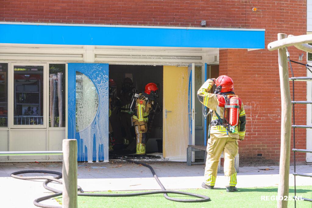 Volgens de brandweer stond de meterkast in brand bij de ingang van de school. Een toevallig aanwezige glazenwasser ontdekte de brand en belde 112.