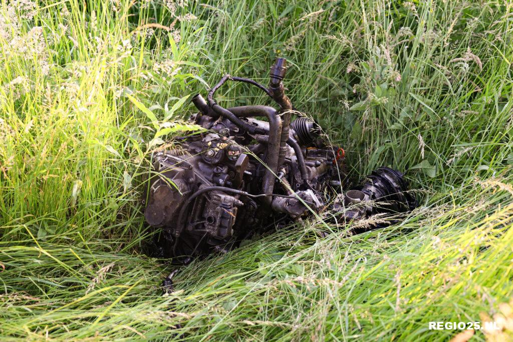 Motorblok uit auto geslingerd bij crash Nagelerweg
