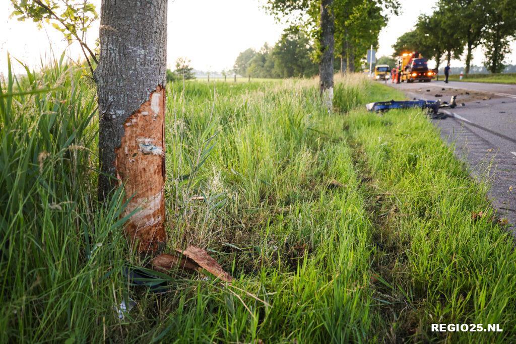 Het éénzijdige ongeval gebeurde even na 20:30 uur in een flauwe bocht ter hoogte van de Bomenweg. De automobilist ging waarschijnlijk met hoge snelheid de bocht in, maar raakte van de weg en botste tegen twee bomen.
