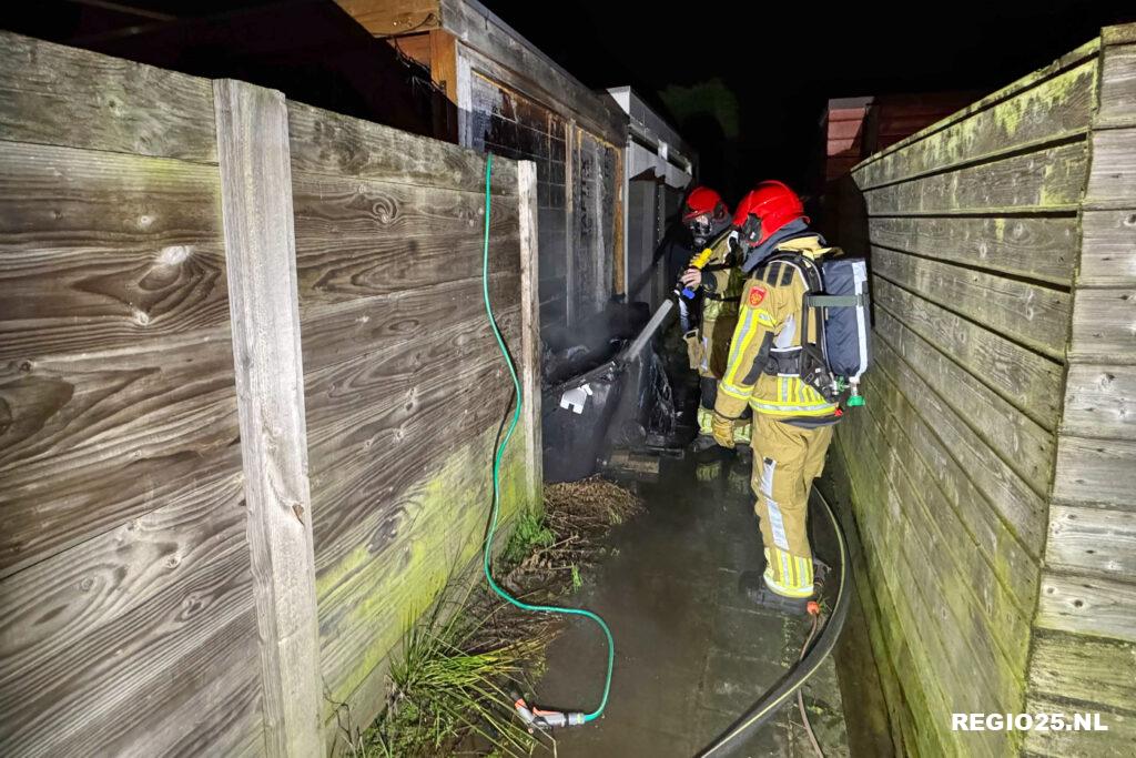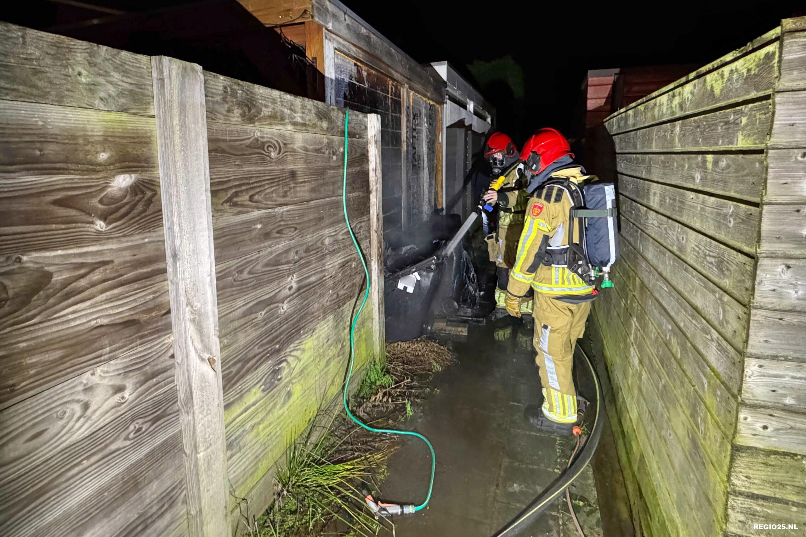 De schuur liep aan de buitenkant schade op, maar bleef verder intact. Vermoedelijk is de brand aangestoken.