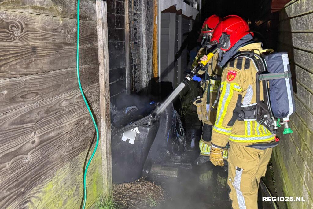 De containers stonden in brand tegen een schuur aan. Omwonenden grepen in en belden 112. Met een tuinslang en emmertjes water gingen de bewoners de vlammen te lijf. Hiermee wisten ze erger te voorkomen.