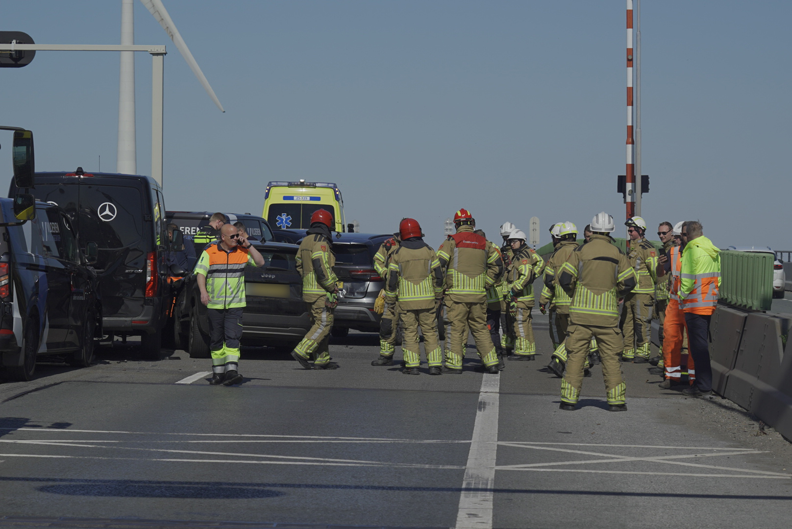 Het ongeluk gebeurde rond 15:30 uur ter hoogte van het beweegbare gedeelte van de Ketelbrug. Bij de aanrijding waren zes voertuigen betrokken, waaronder drie busjes. Voor zover bekend raakte niemand gewond. De oorzaak van de botsing is nog onbekend.