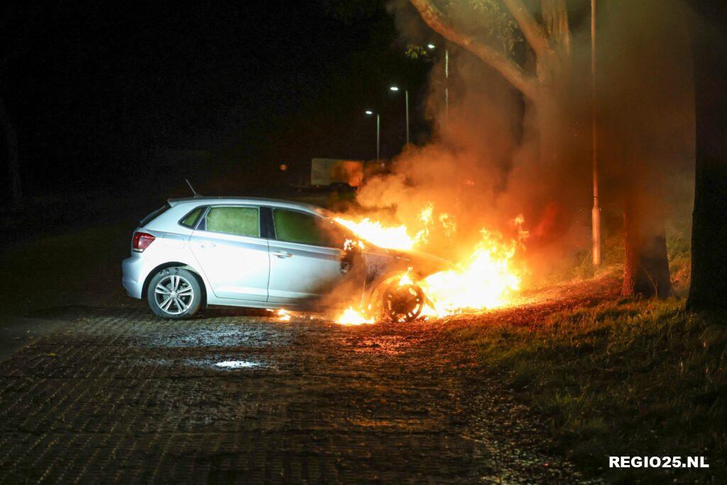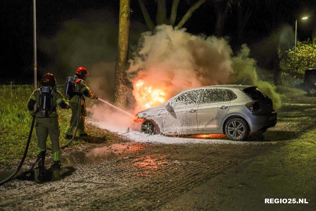 De voorkant van de auto stond in lichterlaaie. De brandweer bluste de brand, maar het voertuig raakte total loss. De politie zocht in de omgeving naar verdachte personen of sporen. Er was geen bestuurder of eigenaar van de auto aanwezig op de vrij afgelegen plek.
