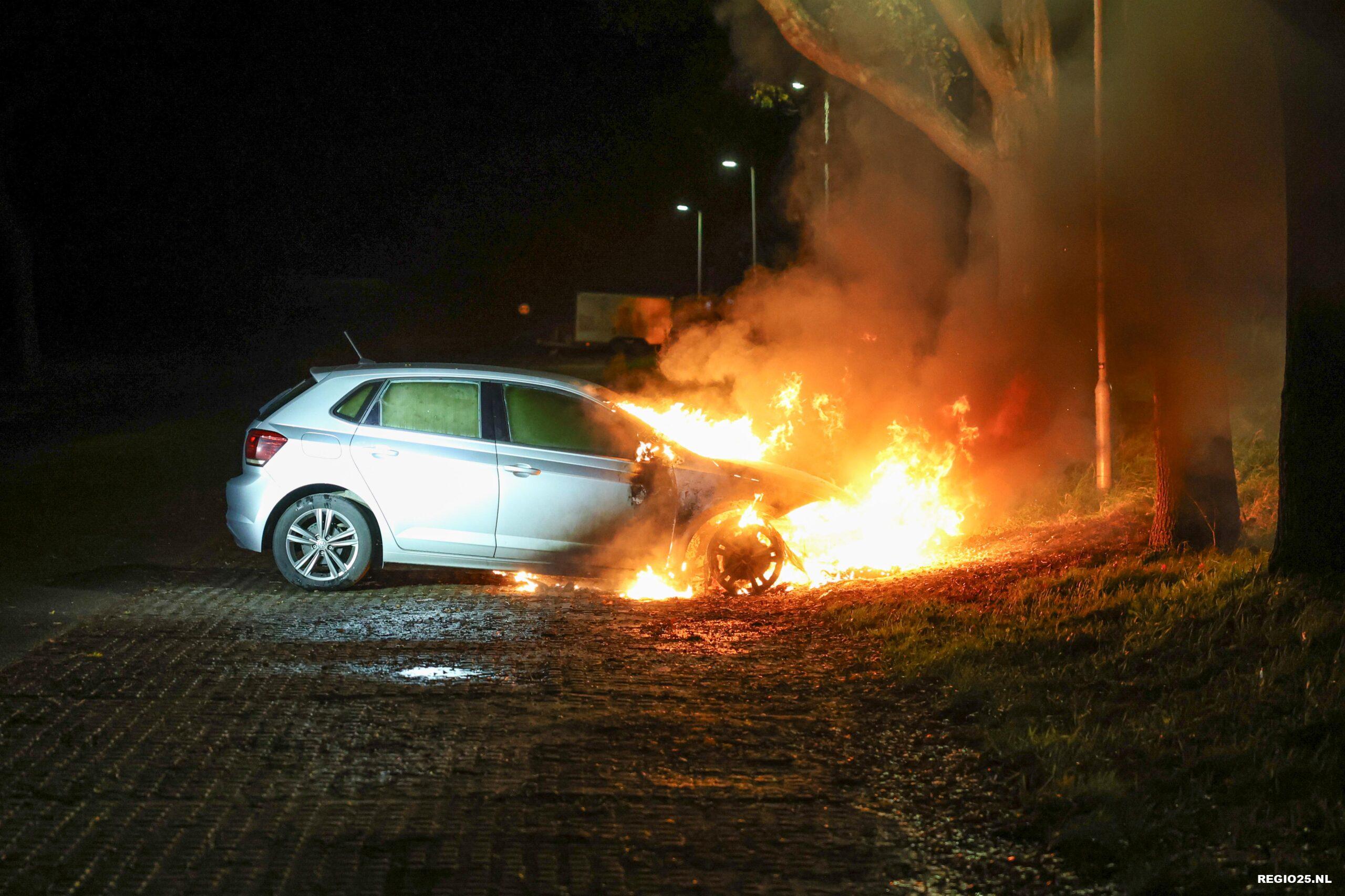De voorkant van de auto stond in lichterlaaie. De brandweer bluste de brand, maar het voertuig raakte total loss. De politie zocht in de omgeving naar verdachte personen of andere sporen. Er was geen bestuurder of eigenaar van de auto aanwezig op de vrij afgelegen plek.