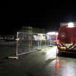 De brandweer heeft de omheining van de bouwplaats in orde gemaakt en kon snel weer vertrekken.